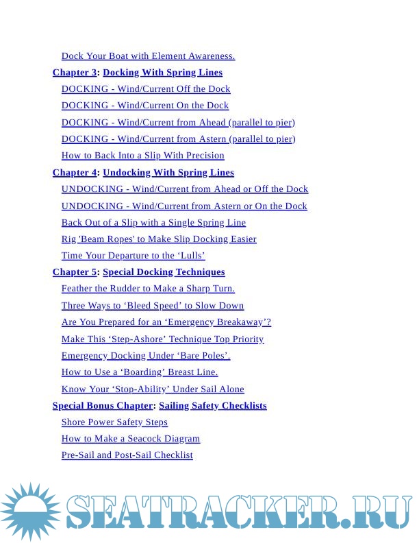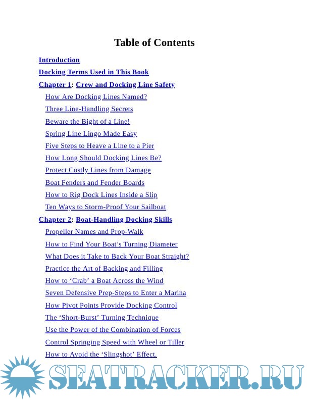 Year: 2022 Language: english Author: Jamieson J. Genre: Manual Publisher: JN Jamieson ISBN: 1736533657 Format: PDF Quality: Scanned pages Pages count: 142 Description: Gain 'the Edge' to Dock Your Boat with ConfidenceHow can you master docking any boat shorthanded with rudder, engine, and a single spring line? What 'works-every-time' skills can you put into play, starting today, to boost your boat-handling abilities in a blustery breeze or strong current?Discover the insider secrets the pros use to make a bull's eye approach and land between two other boats, work with wind or current to make smoother landings, or take control in a docking emergency in case your engine stops or a line gets wrapped in your propeller.Captain John shows you how to:· Use one line to dock or un-dock your boat smooth and easy.· Protect your costly hull with 'sentinels' and 'line wrapping'.· Make an emergency landing at a pier with three easy steps.· Use your rudder alone to land a disabled boat inside a slip.· Tap into the little-known secret of R.E.S.T. for precision docking.· Slow down without an engine, using three secret techniques.· Prevent flooding Check out what’s inside: Vital docking terms you must know before you start Ten ways to stormproof your sailboat What docking skills are the most important, and which ones should you master first? What does it take to back your boat straight? How to enter a marina - seven defensive prep-steps What is the proper way to use a spring line when docking? Docking and undocking with spring lines explained with clarity – master-level knowledge Special docking techniques every sailor must master BONUS CHAPTER! - Captain John’s Proven Sailing Safety Checklists So much more! So if you are looking for an easy-to-understand guide to docking and boat handling, this book is exactly what you need!emergencies with one simple step after tying up.Use this practical docking guide to gain the confidence you need for safer sailing or cruising anywhere in the world! Additional info: About the Author John Jamieson served for over 20 years in the U.S. Coast Guard as a navigator, search-and-rescue skipper, and master training specialist. Later, he directed the seamanship department at the Chapman School of Seamanship in Florida. His articles have been published by Blue Water Sailing and Good Old Boat magazine. Visit his website at www.skippertips.com