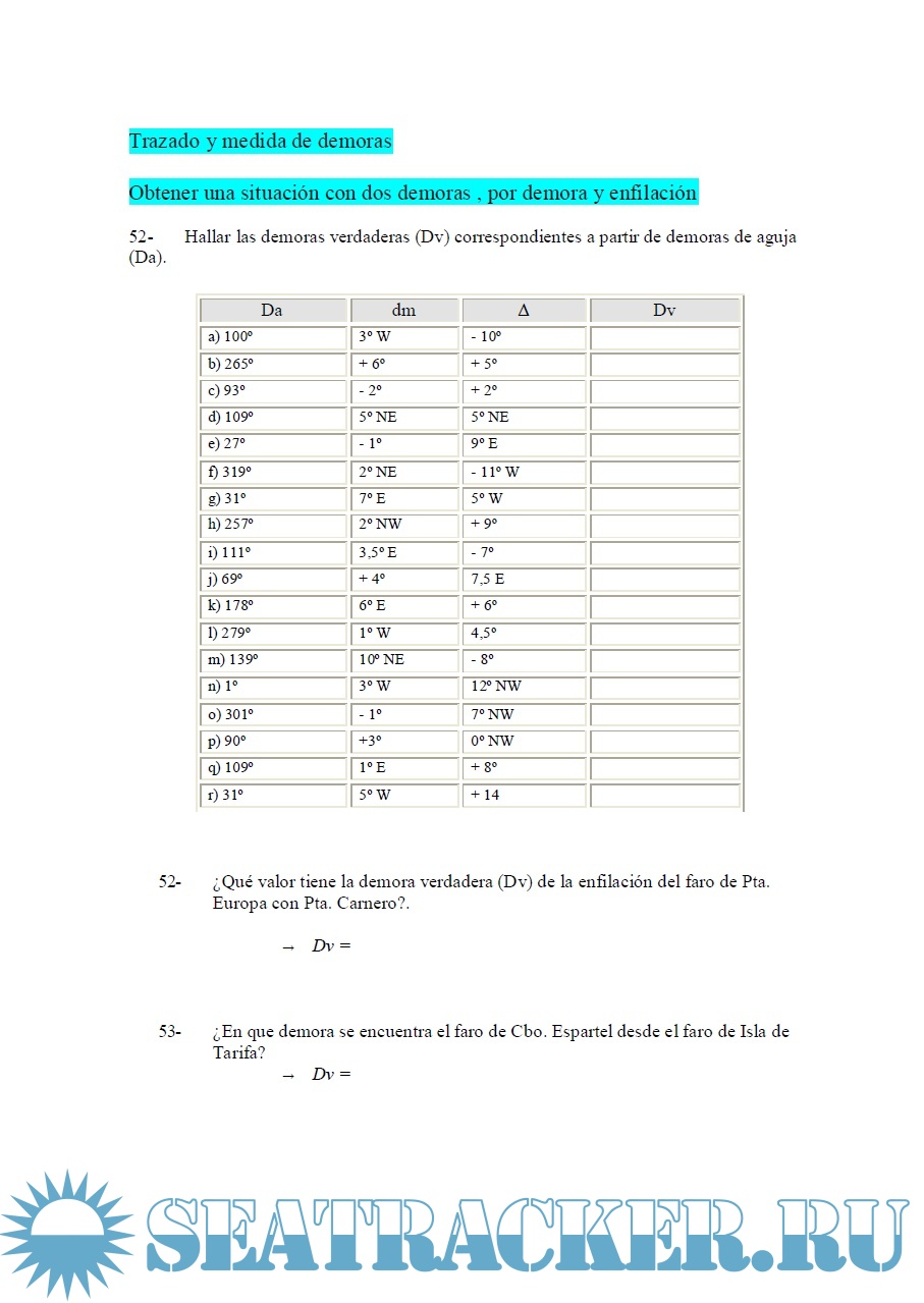 Ejercicios de Navegación con Respuestas para Patrón de Imbarcaciones de Recreo y Repaso para Patrón de Yate