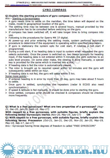 Navigational Aids - Gyro Numericals from Past Papers - Phase II (Chief Mate F.G.) Mercantile Marine…