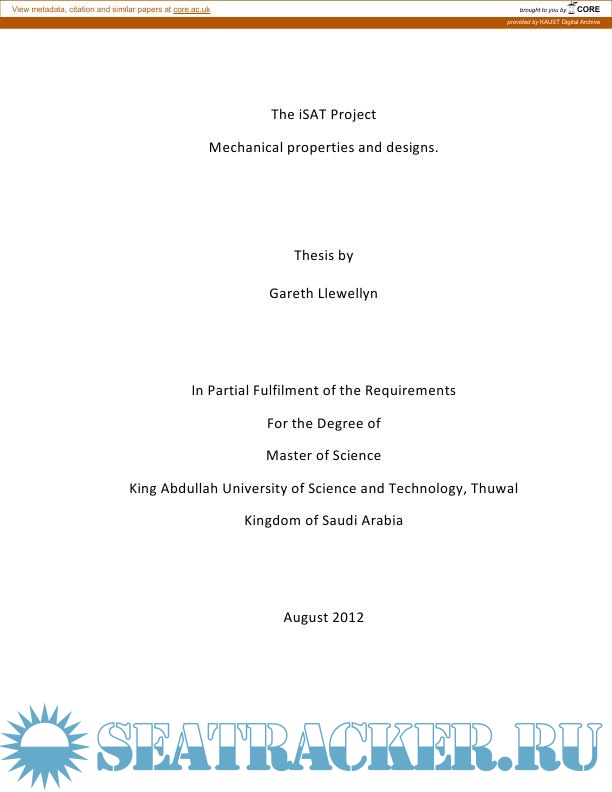 Year: 2012 Language: english Author: Llewellyn G. Genre: Research papers Publisher: King Abdullah University of Science and Technology Format: PDF Quality: Scanned pages Pages count: 93 Description: The iSAT Project - Mechanical properties and designs