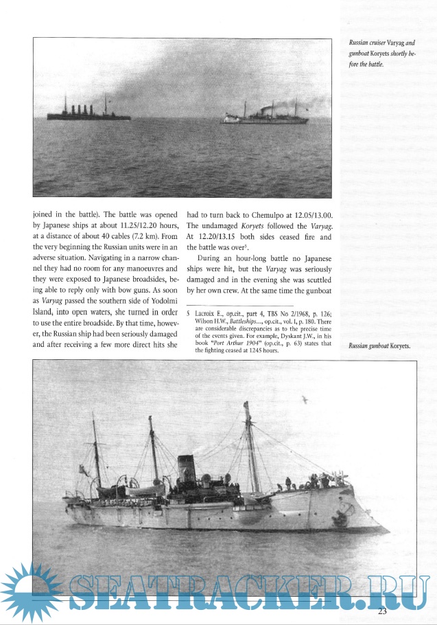 Year: 2009 Language: english Author: Piotr Olender Genre: History Publisher: Stratus Edition: Maritime Series 3101 Format: PDF Quality: Scanned pages Pages count: 154 Description: Book describes technical aspects of the Russo-Japanese Naval War. Contains descriptions of all involved ships, Russian and Japanese ones. Maps, photos.