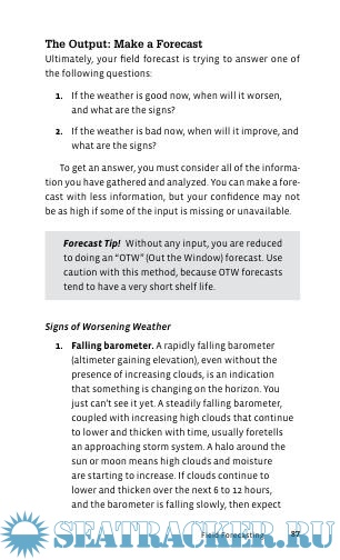 Description: Reading Weather provides a quick and simple way to understand how the atmosphere works, how to interpret and use weather forecasts before venturing outdoors, and also how to make your own forecast in the field by observing the changes in the weather. This fully updated and revised reference will arm you with the meteorological knowledge necessary to make good decisions on whether to proceed or retreat in the face of a storm. Also included are helpful definitions, tables, and simplified graphics of common weather features.
