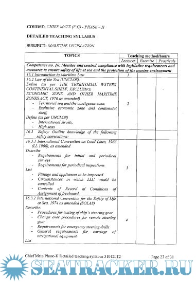 Syllabus for Chief Mate F.G. (Phase I & II) Mercantile Marine Department (MMD), India Examinations