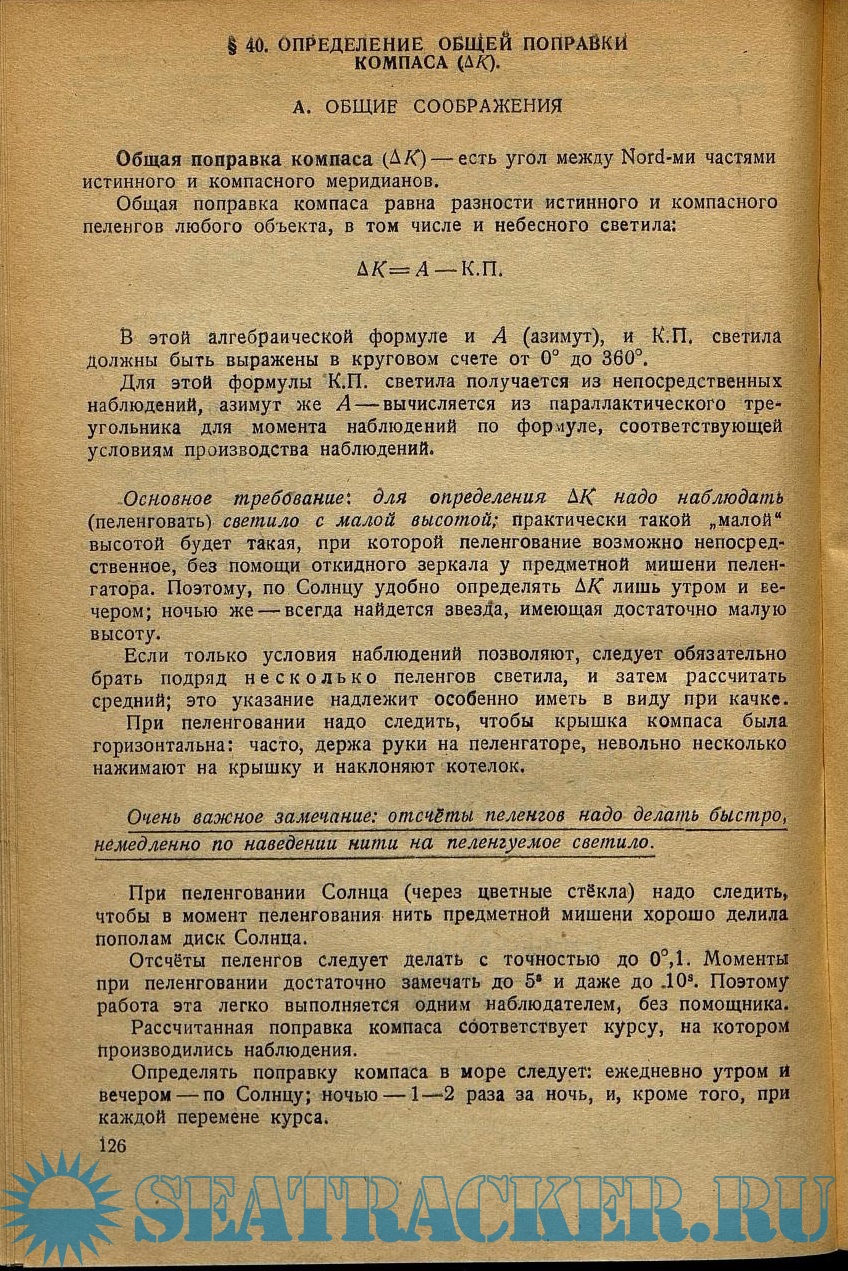 Определение общей поправки компаса.