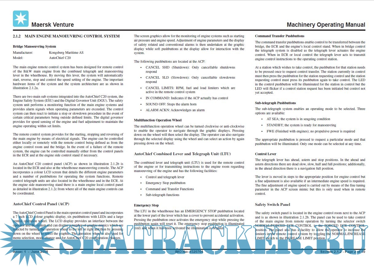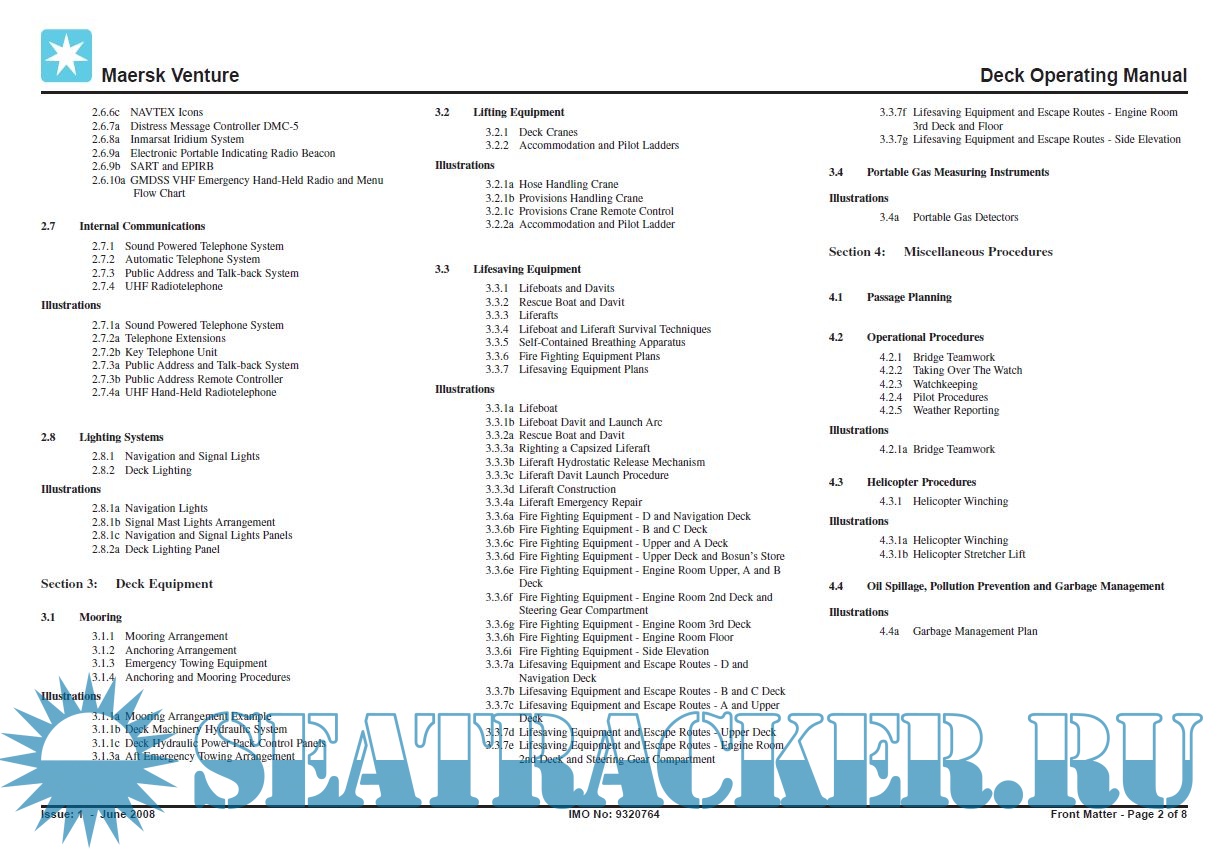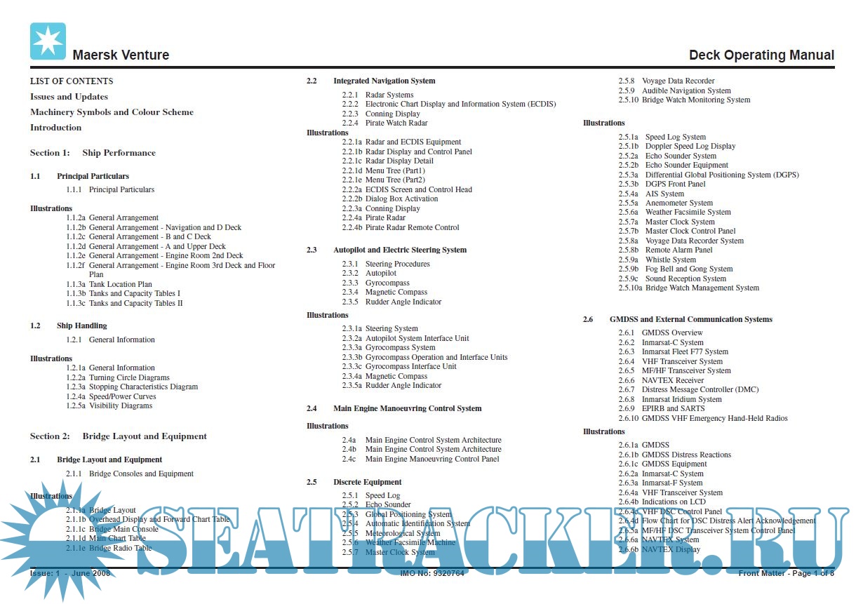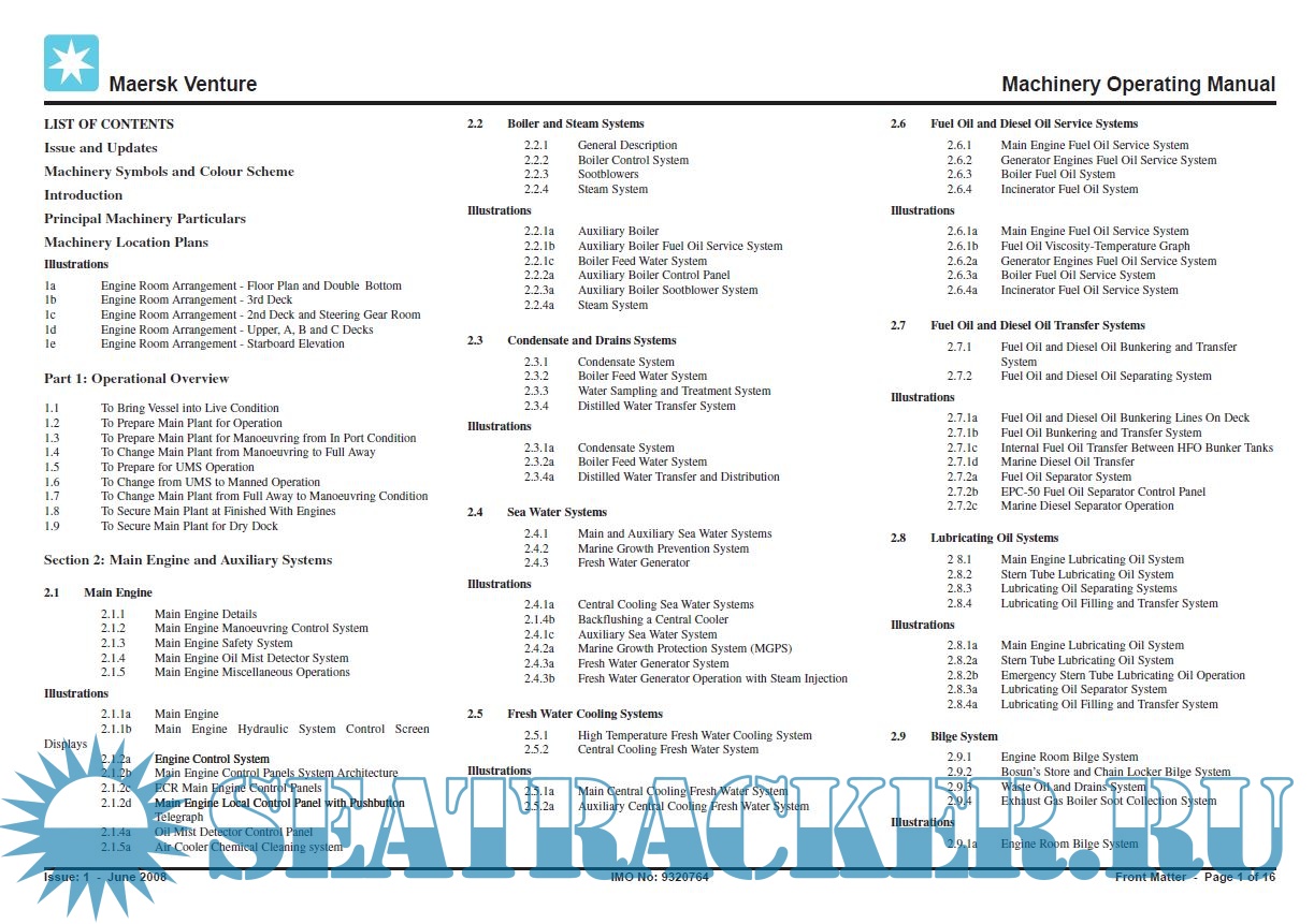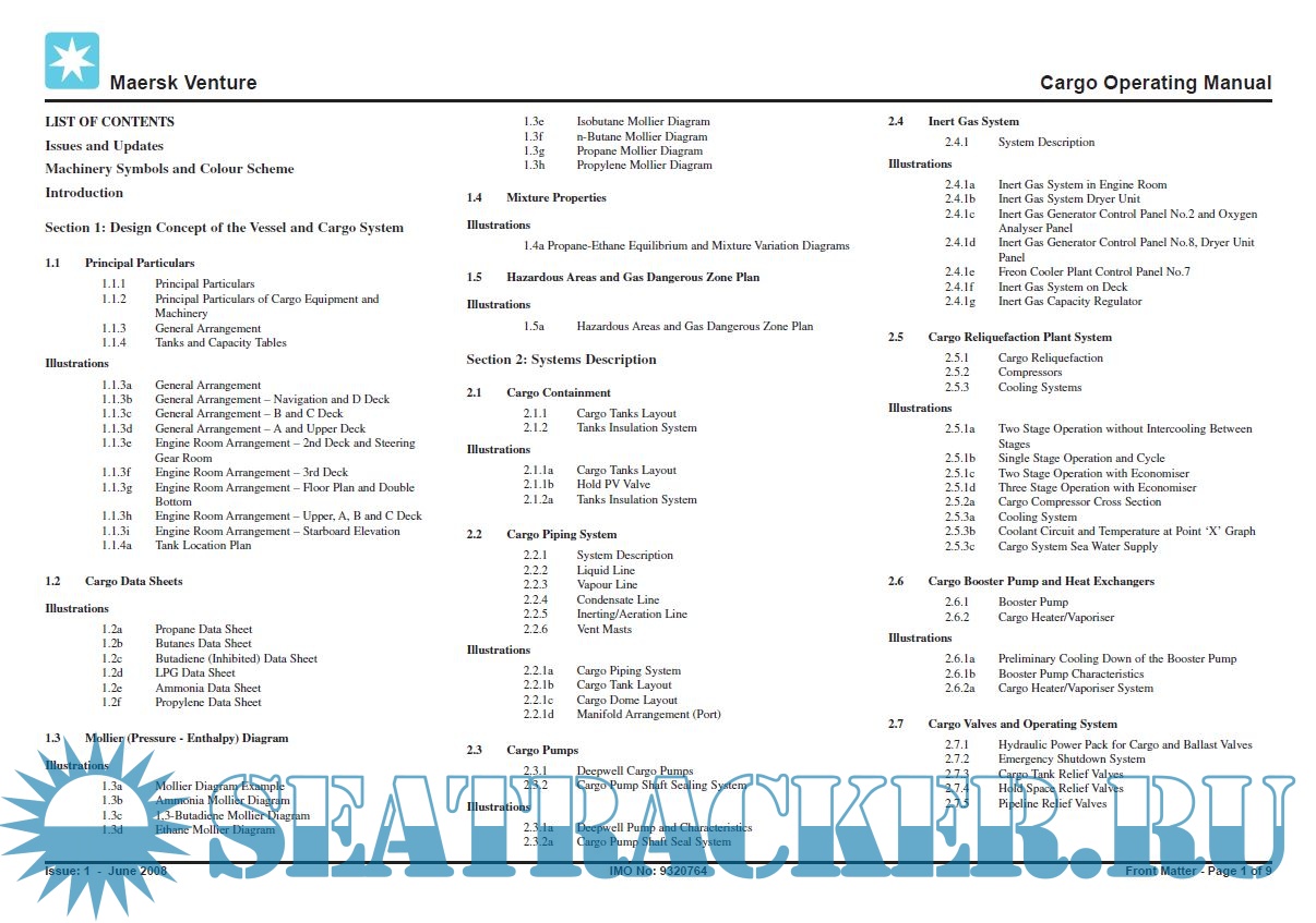 Year: 2008 Language: english Author: Worldwide Marine Technology Ltd Genre: Manual Publisher: Worldwide Marine Technology Ltd Format: PDF Quality: eBook Pages count: 1036 Description: BW OAK is a LPG carrier built in 2008 by HYUNDAI SAMHO HEAVY INDUSTRIES CO. LTD. - INCHEON, SOUTH KOREA. Currently sailing under the flag of India. Formerly also known as BW OAK, MAERSK VENTURE. It's gross tonnage is 47386 tons. There are three operating manuals - for deck, cargo and machinery. Additional info: Pdf files contain bookmarks for easy navigation.