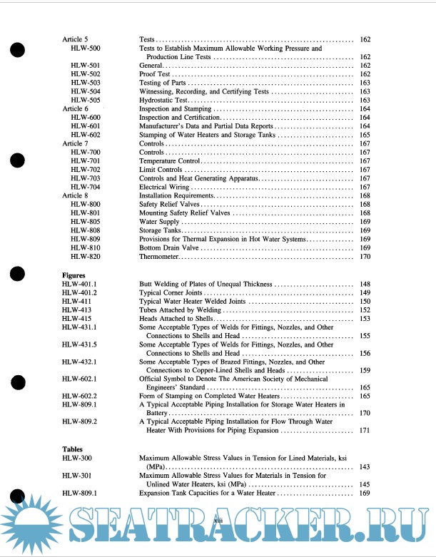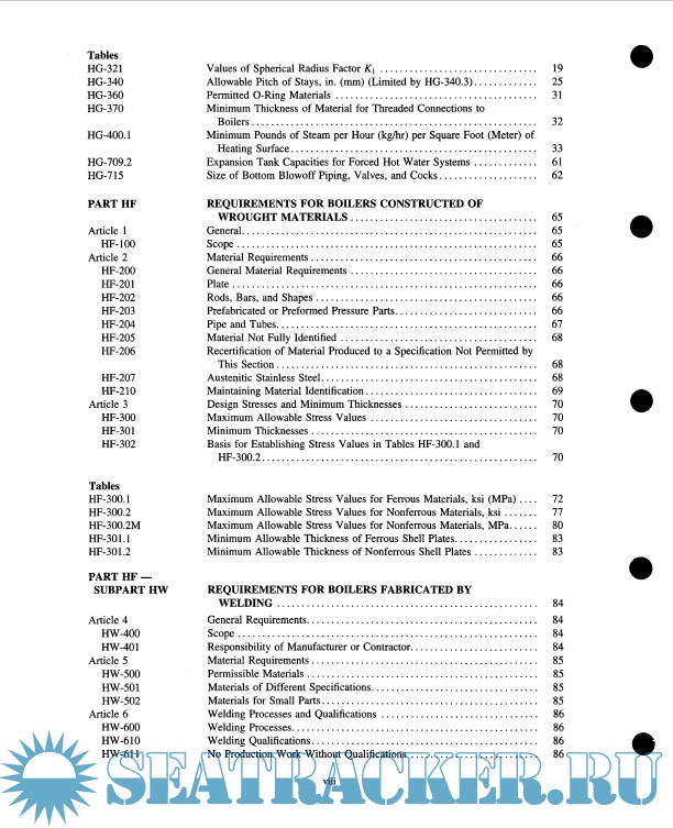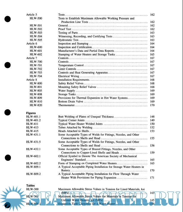 Year: 2007 Language: english Author: ASME Genre: Technical book Publisher: The American Society of Mechanical Engineers Edition: 2007 Format: PDF Quality: Scanned pages Pages count: 299 Description: The ASME Boiler & Pressure Vessel Code (BPVC) is an American Society of Mechanical Engineers (ASME) standard that regulates the design and construction of boilers and pressure vessels. The document is written and maintained by volunteers chosen for their technical expertise. The ASME works as an accreditation body and entitles independent third parties (such as verification, testing and certification agencies) to inspect and ensure compliance to the BPVC. This Section provides requirements for design, fabrication, installation and inspection of steam heating, hot water heating, hot water supply boilers, and potable water heaters intended for low pressure service that are directly fired by oil, gas, electricity, coal or other solid or liquid fuels. It contains appendices which cover approval of new material, methods of checking safety valve and safety relief valve capacity, examples of methods of checking safety valve and safety relief valve capacity, examples of methods of calculation and computation, definitions relating to boiler design and welding, and quality control systems. Rules pertaining to use of the H, HV, and HLW ASME Product Certification Marks are also included. Careful application of this Section will help users to comply with applicable regulations within their jurisdictions, while achieving the operational, cost and safety benefits to be gained from the many industry best-practices detailed within these volumes.