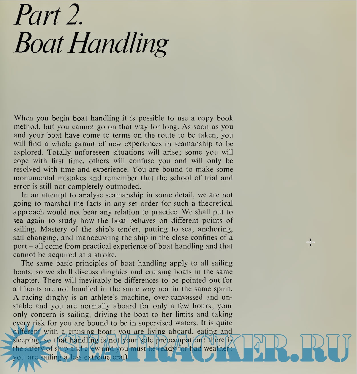 The course is a synthesis, neither an encyclopedia, nor a mere compilation. We have only included what seems to be essential in the experience of succeeding generations of sailors and instructors - during more than a quarter of a century at Glenans.