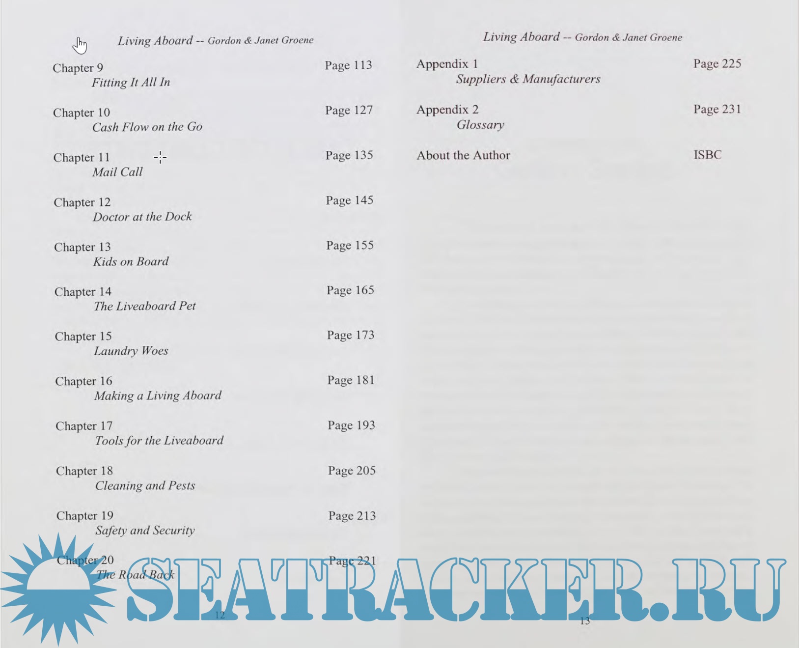 Year: 2000 Language: English Author: Gordon & Janet Groene Genre: Handbook Publisher: Bristol Fashion Publications, Inc. Edition: First ISBN: 978-1892216274 Format: PDF Quality: Scanned pages Pages count: 246 Description: Living Aboard is not another "How we did it," book derived from the experiences of one couple or family. It is not about sailing around the world or to selected far off destinations. It is about living aboard a boat, whether in a slip, on the hook, or at sea. Granted, Janet and Gordon lived aboard for many years and in doing so learned the liveaboard lifestyle the hard way. They not only draw on their days as liveaboards but relate other cruisers' lives as well. By relating knowledge from a varied and diverse group of liveaboards, the Groene's have made this book a true insight into the lifestyle. A lifestyle that is wonderful for some and a nightmare for others. The time to learn if this lifestyle is right for you is now, before you move aboard. After reading this book you will know if the liveaboard lifestyle is right for you. Living Aboard explains what to expect from the lifestyle. Janet's companion book, Creating Comfort Afloat, (Bristol Fashion Publications) explains how to make a boat your home. The Groene's have written hundreds of articles on the liveaboard lifestyle. Now you can have all that knowledge in this one volume, the Groene's nineteenth book, Living Aboard. Illustrated