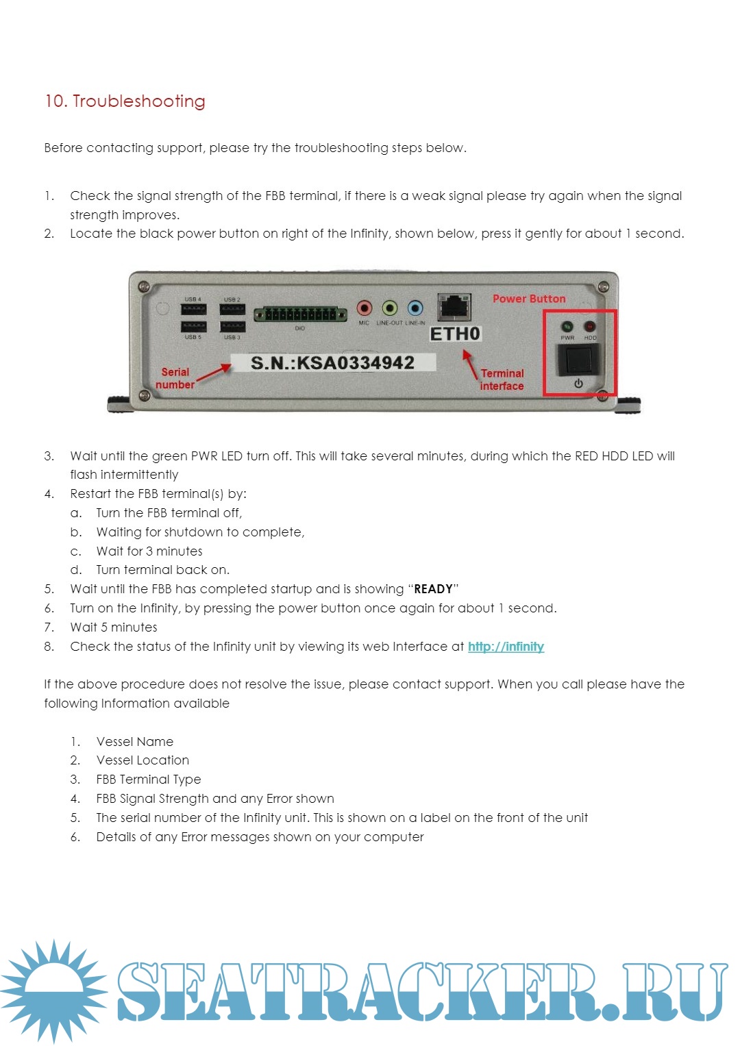  Read the Crew Internet Instructions that came with your Infinity.