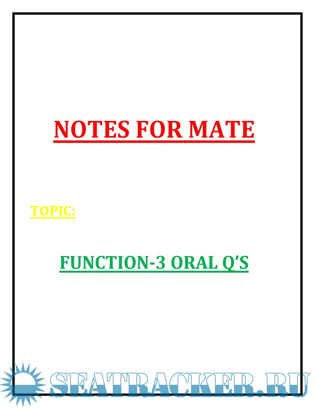 Description: Notes for Mate: Oral Questions for Function 3