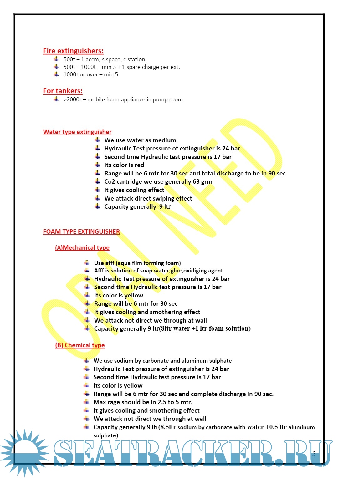 Notes for The Second Mate: Fire Fighting Appliances Code