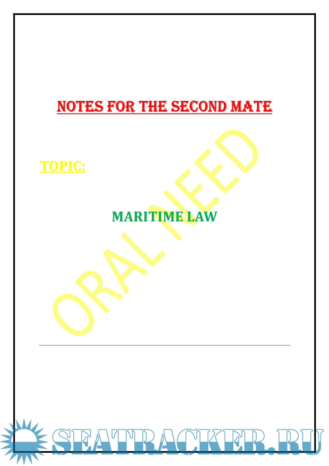 Description: Notes for The Second Mate: Maritime Law.