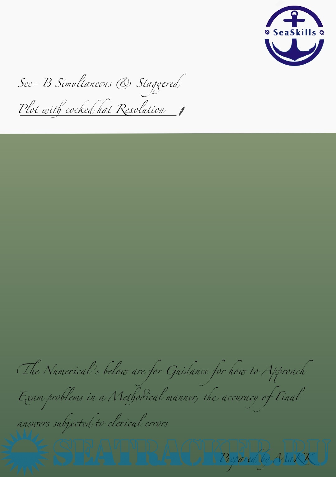 Navigation - Section B: Simultaneous & Staggered (Plot with cocked hat resolution) from Past Question Papers of Mercantile Marine Department (MMD), India Examinations for Phase I (Chief Mate F.G.)