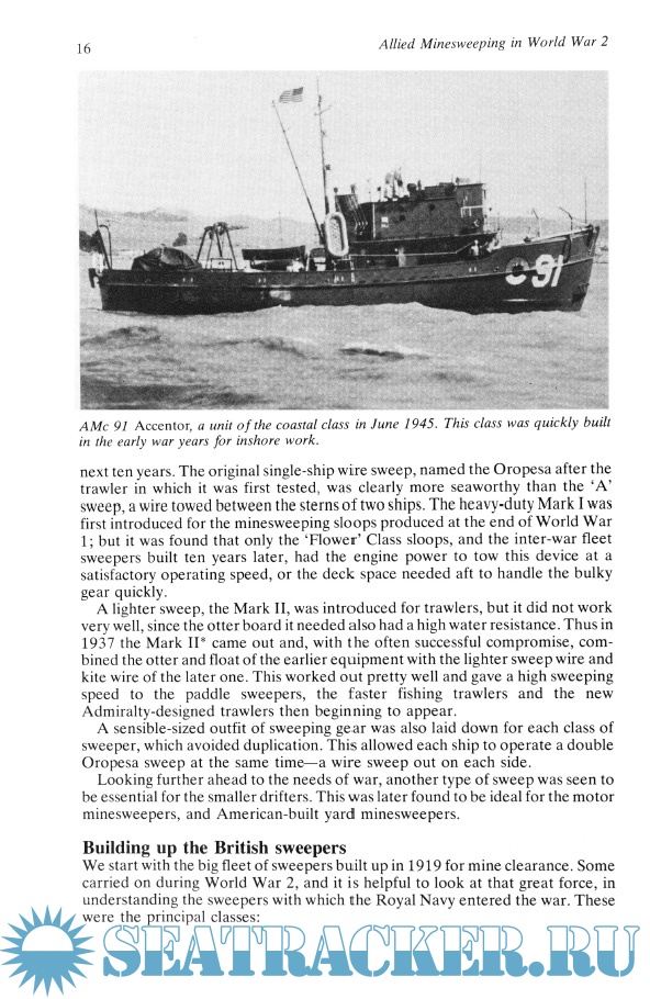 Description: A useful general history, concentrating on the European theater with more detailed accounts of specific operations (e.g. the clearing of the Scheldt) and some anecdotal content. It describes the mines themselves, together with sweeping techniques and formations. Appendices include profiles of minesweeper classes, operational strengths by year, comparative specifications, war losses, and other technical data.