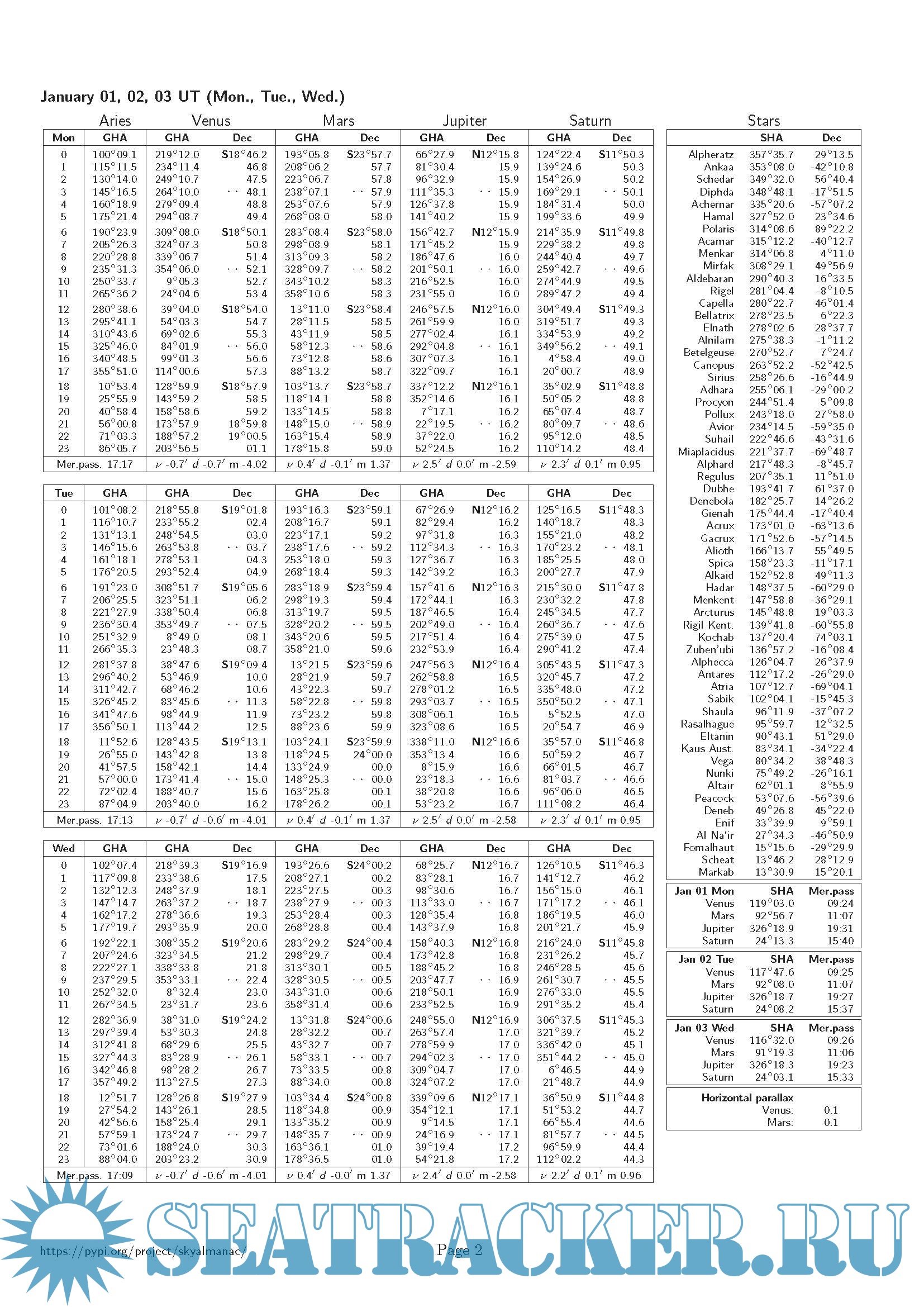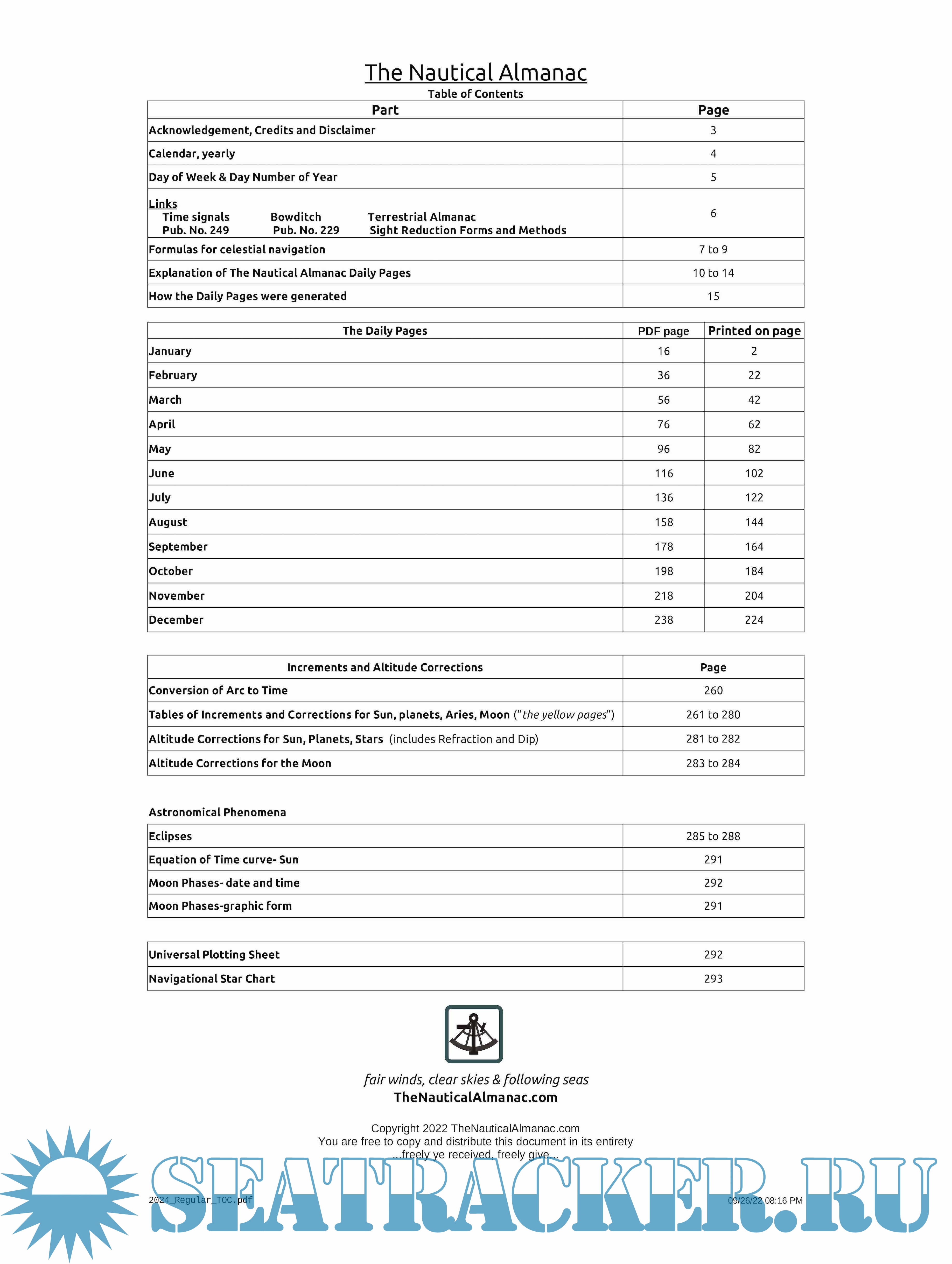 Description: The Nautical Almanac world's most complete source of free celestial navigation information.