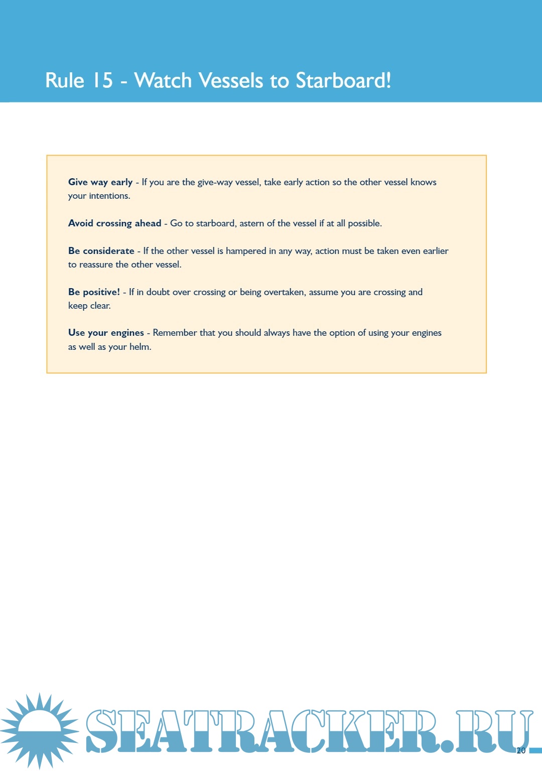 Rule 15 Watch Vessels to Starboard! 19