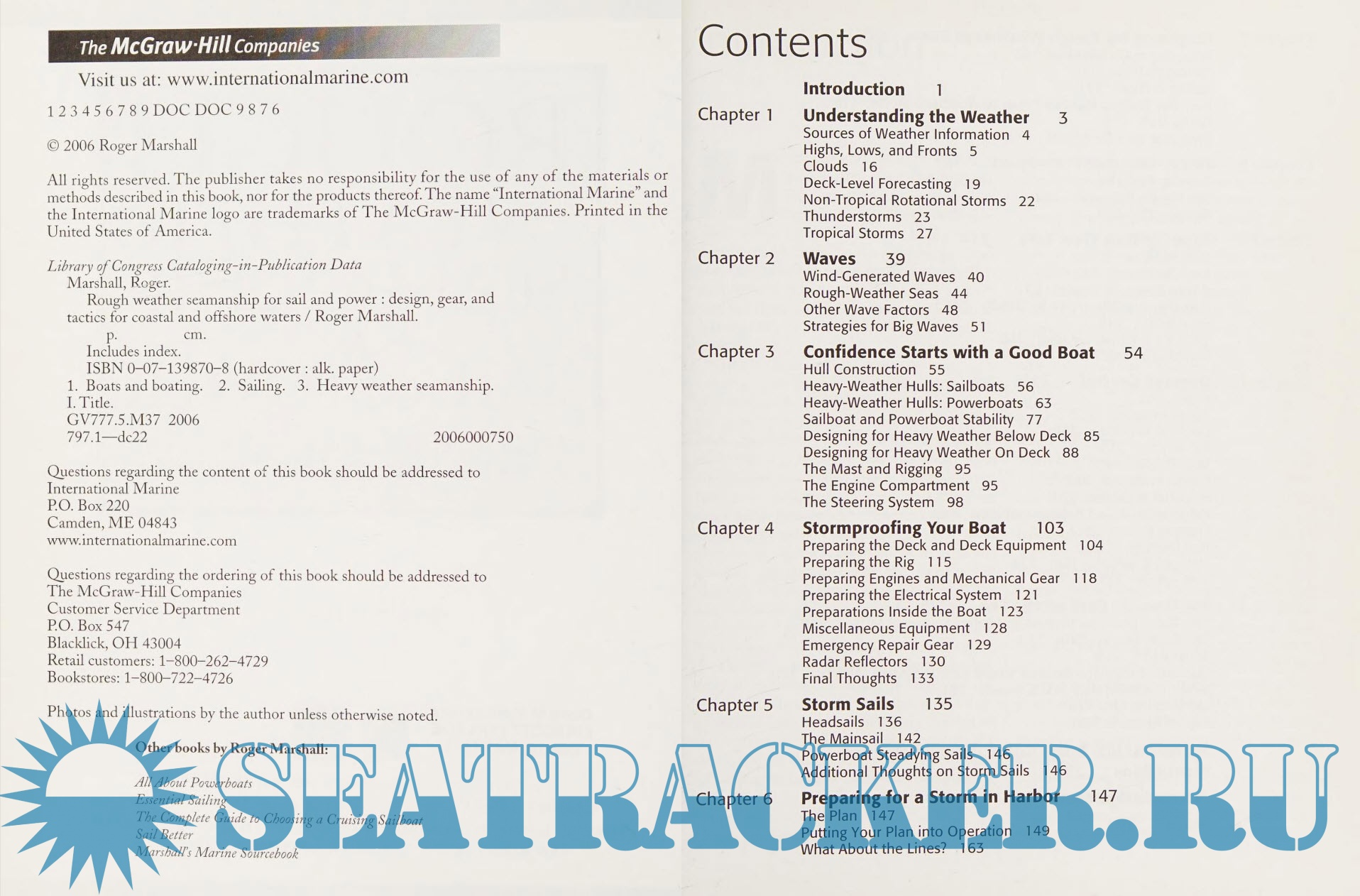 Year: 2010 Language: English Author: Roger Marshall Genre: Handbook Publisher: International Marine/Ragged Mountain Press Edition: First ISBN: 978-1626544925 Format: PDF Quality: Scanned pages Pages count: 304 Description: Written by an accomplished naval architect, this book shows the average boater how to safely weather the fiercest storm. Rough Weather Seamanship for Sail and Power arms readers with the knowledge they need to select and modify a boat for heavy weather; understand, track, and evade storm systems; and prepare for a storm in harbor, coastal waters, and offshore. It offers ocean-tested heavy-weather techniques for both sailboats and powerboats, practical advice on surviving worst-case scenarios, and decision-making exercises that can save lives.