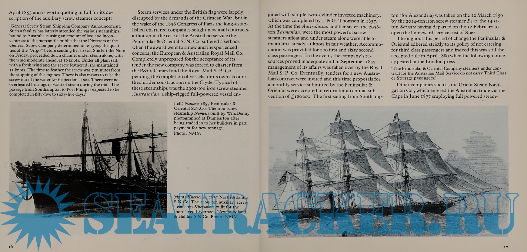 Year: 1980 Language: english Author: John M. Maber Genre: History Publisher: H.M. Stationery Office Format: PDF Quality: Scanned pages Pages count: 68 Description: An account of the development of passenger ships from 1850 to 1970from wooden-hulled paddlesteamers augmented with full outfit of sails to the screw propeller, iron hull and compound engine.