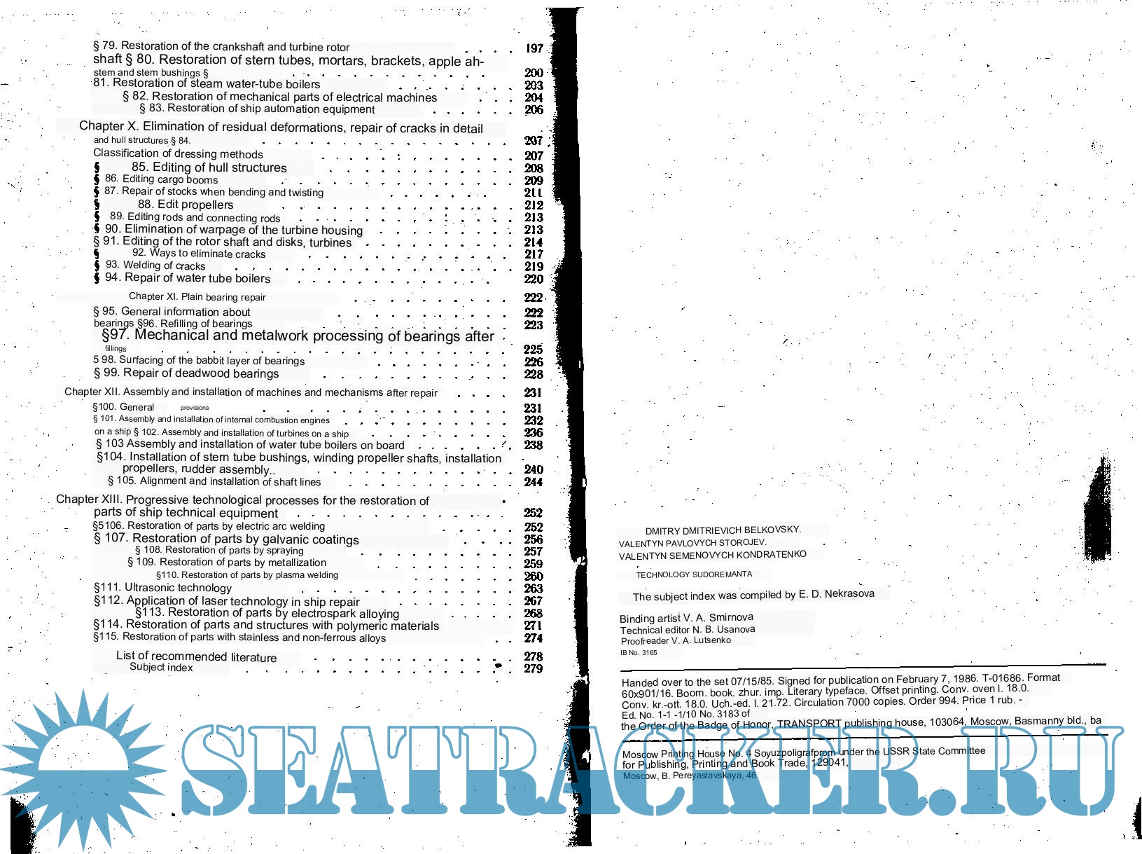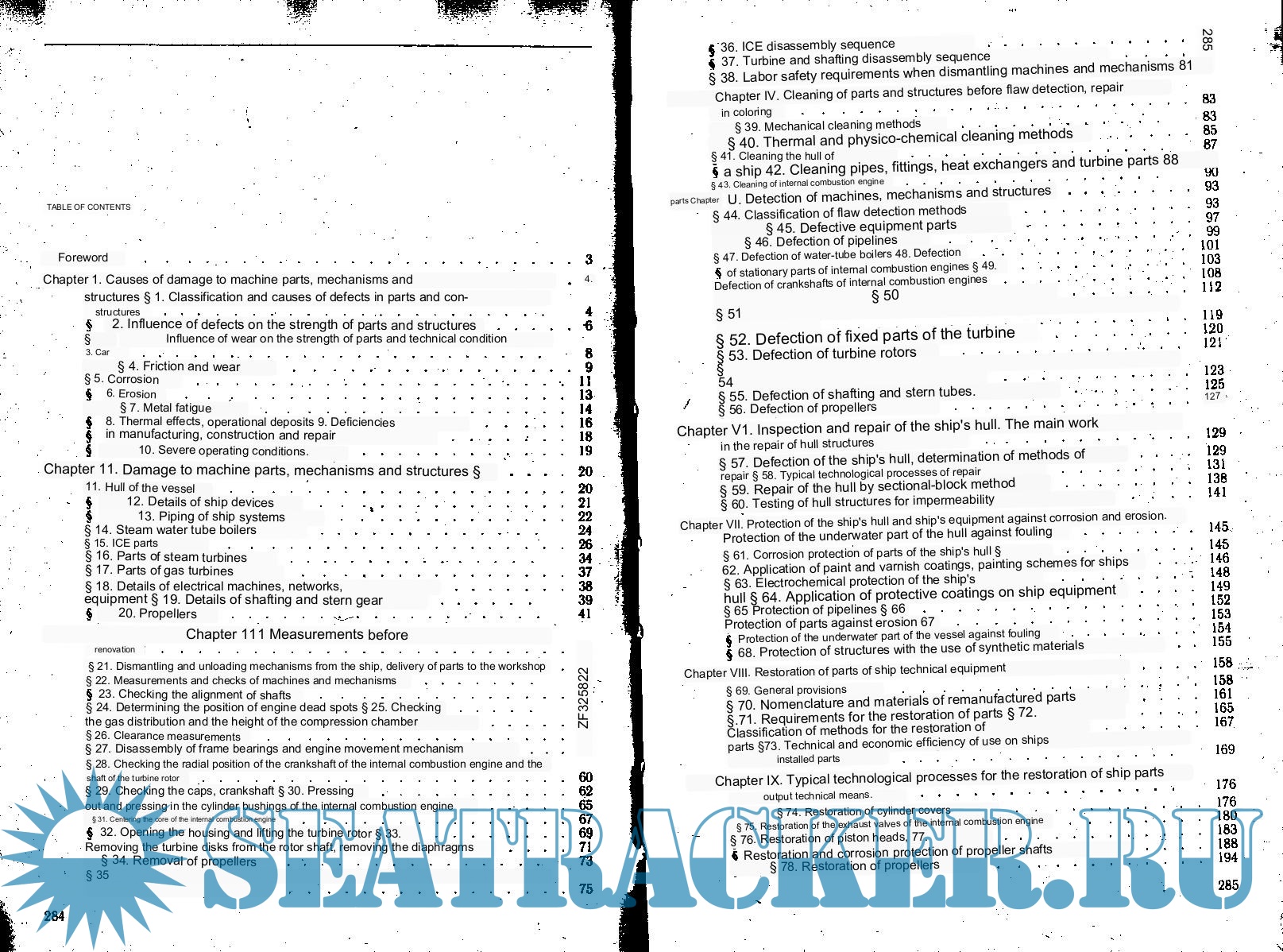 Description: Contains the principles of construction and development of technological processes of repair. Typical malfunctions and defects of ship devices and mechanisms are described. Causes of damage to parts and mechanisms.