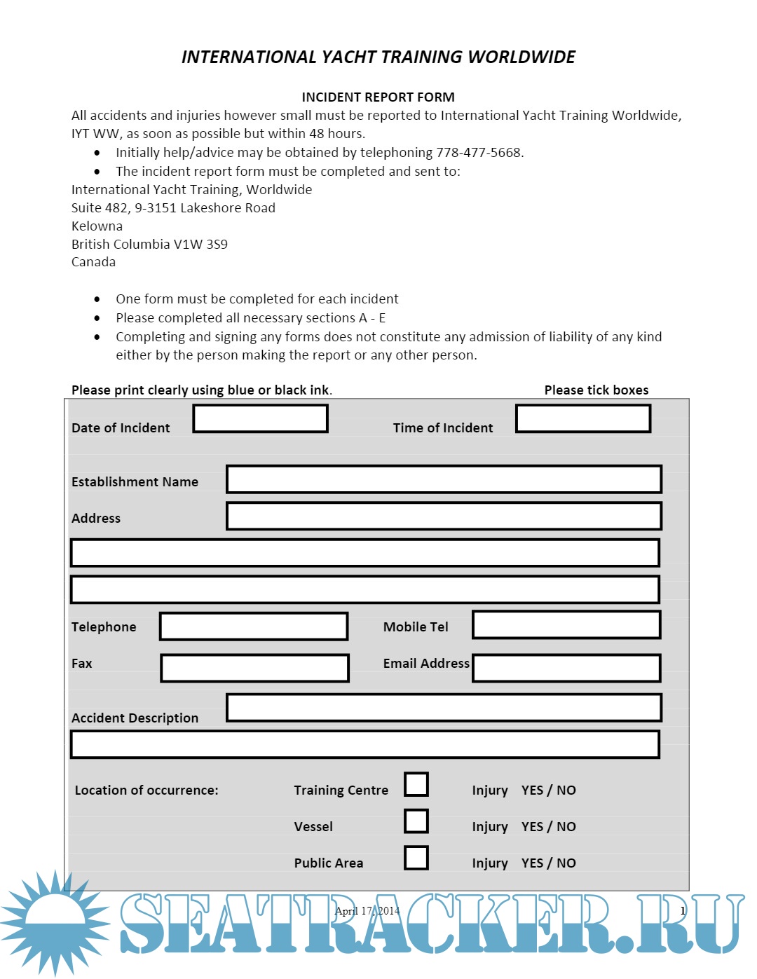 IYT INCIDENT REPORT FORM