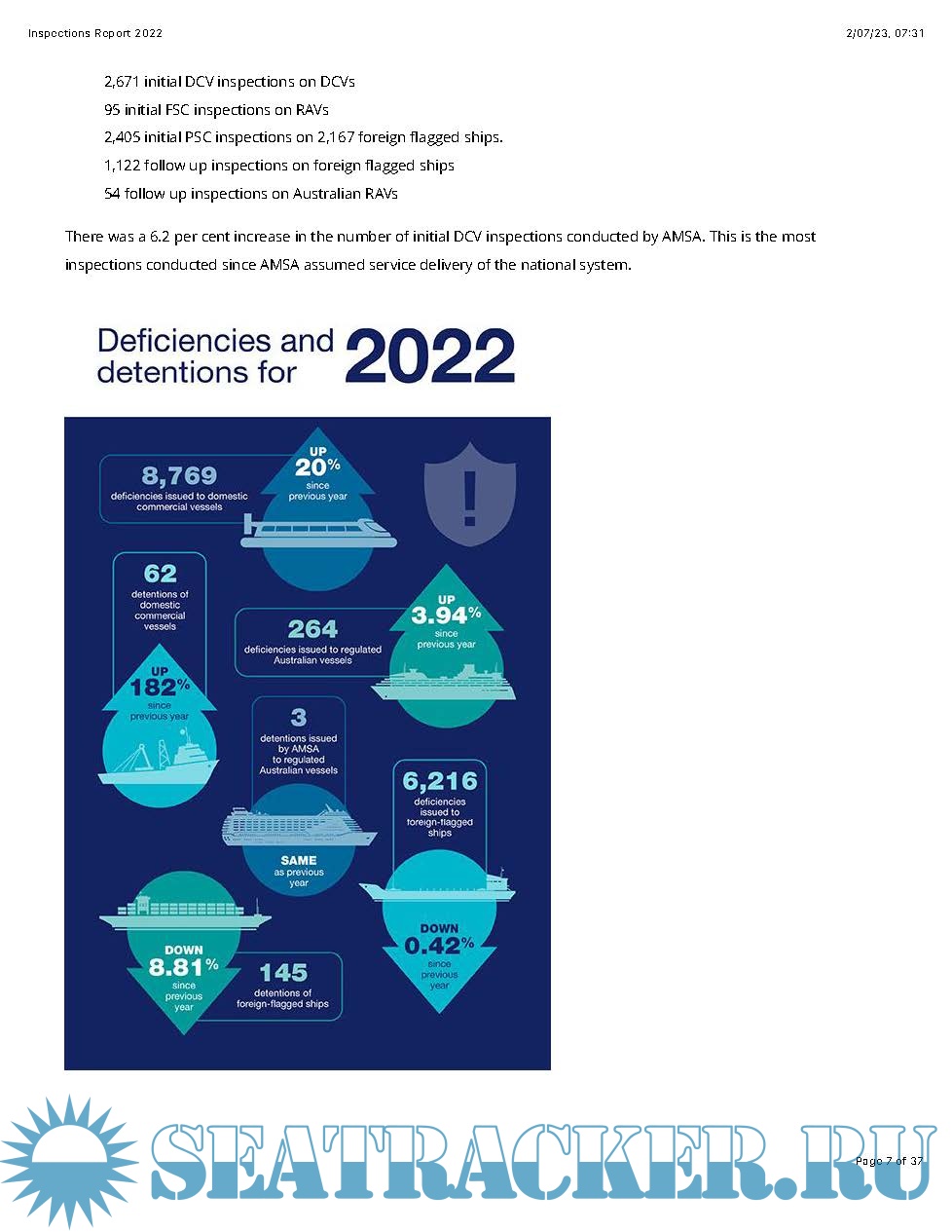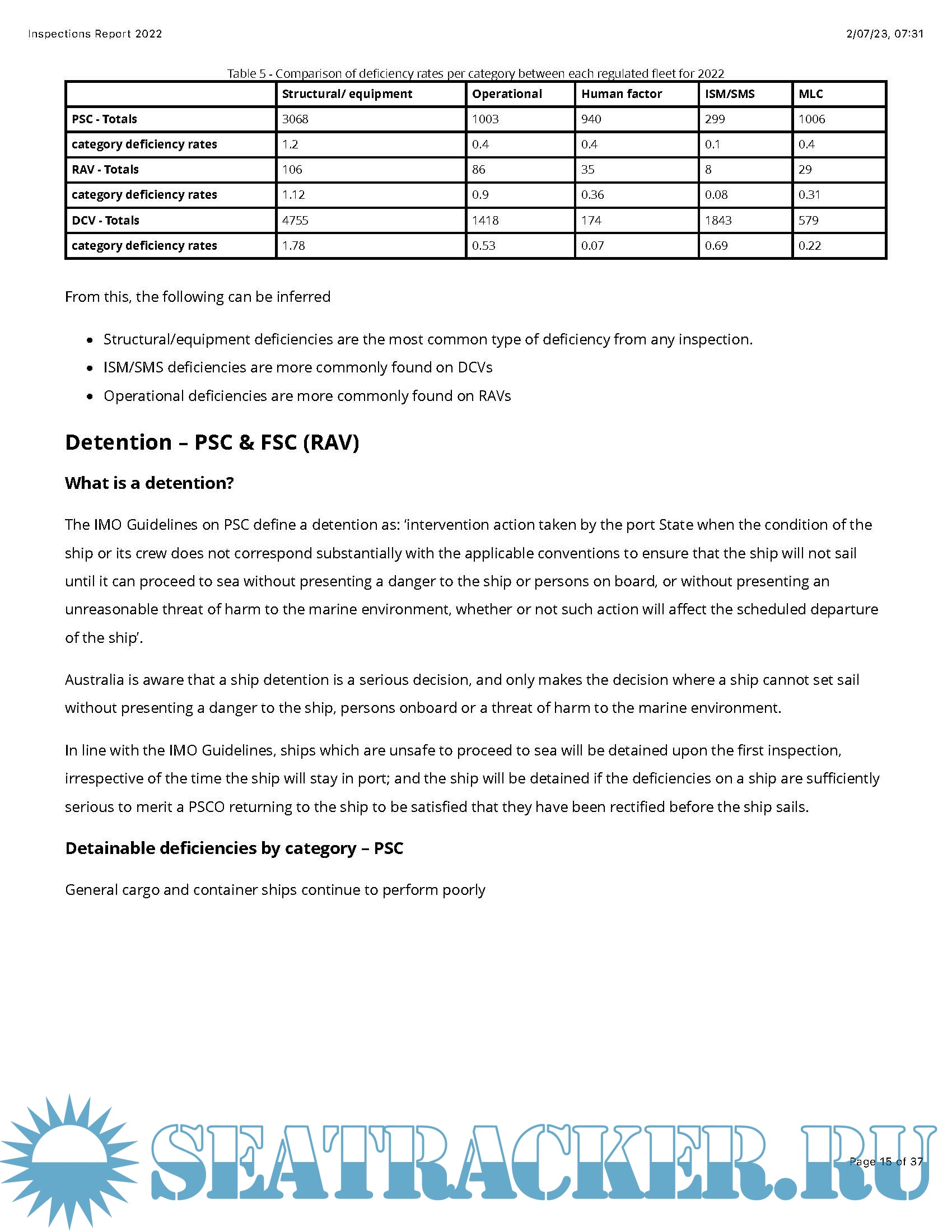 This report summarises the PSC activities of the Australian Maritime Safety Authority (AMSA), detailing the performance of commercial shipping companies, flag States and Classification Societies for the 2022 calendar year.