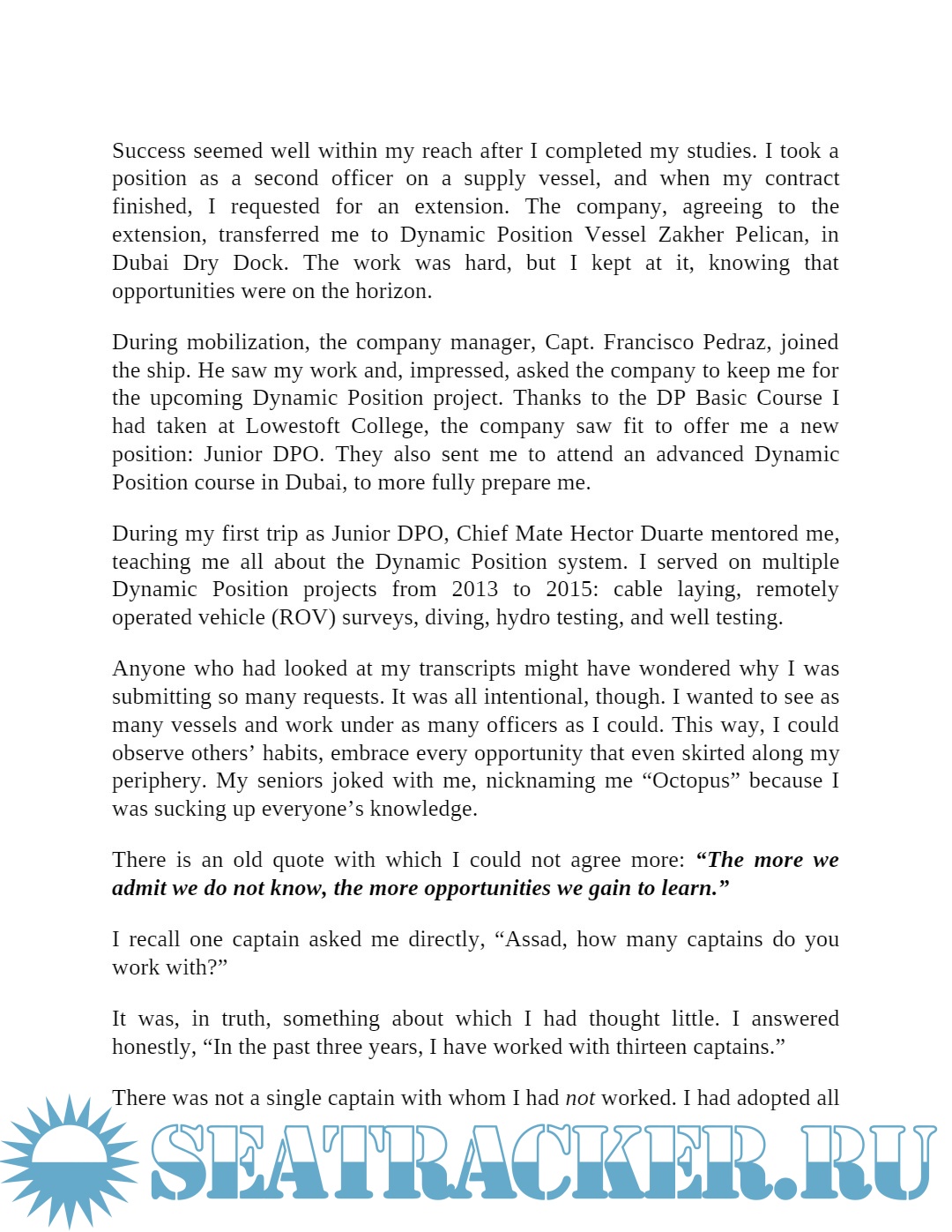 Year: 2021 Language: english Author: Capt. Assad Hamid Genre: Other Publisher: Twagaa International Edition: 1st ISBN: 978-93-92849-64-0 Format: PDF Quality: eBook Pages count: 50 Description: From his time in media to his current service as a ship master, Capt. Assad Hamid has overcome a range of challenges. He has navigated the all-too-difficult job market and forged his own educational path, spending much of his time reading up on self-development concepts and networking with those who could teach him. In his book, he presents his own story, both the personal details and the more widely applicable advice.