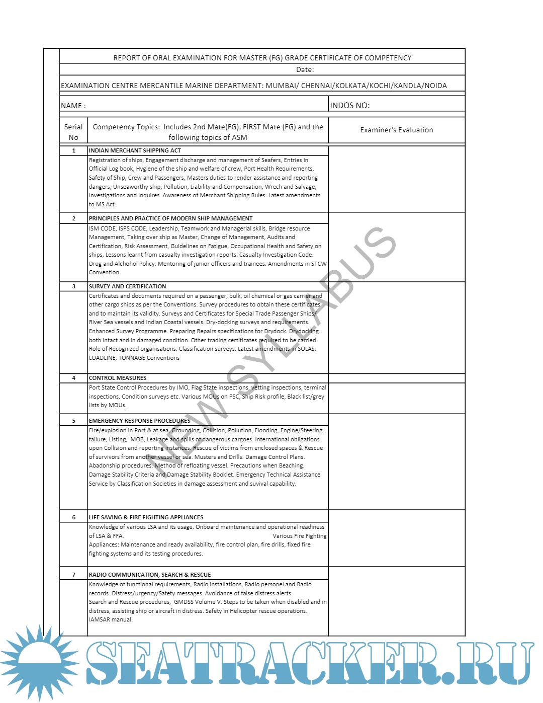Syllabus for Oral Examination for ASM (Advanced Shipboard Management) / Master's Mercantile Marine Department (MMD), India