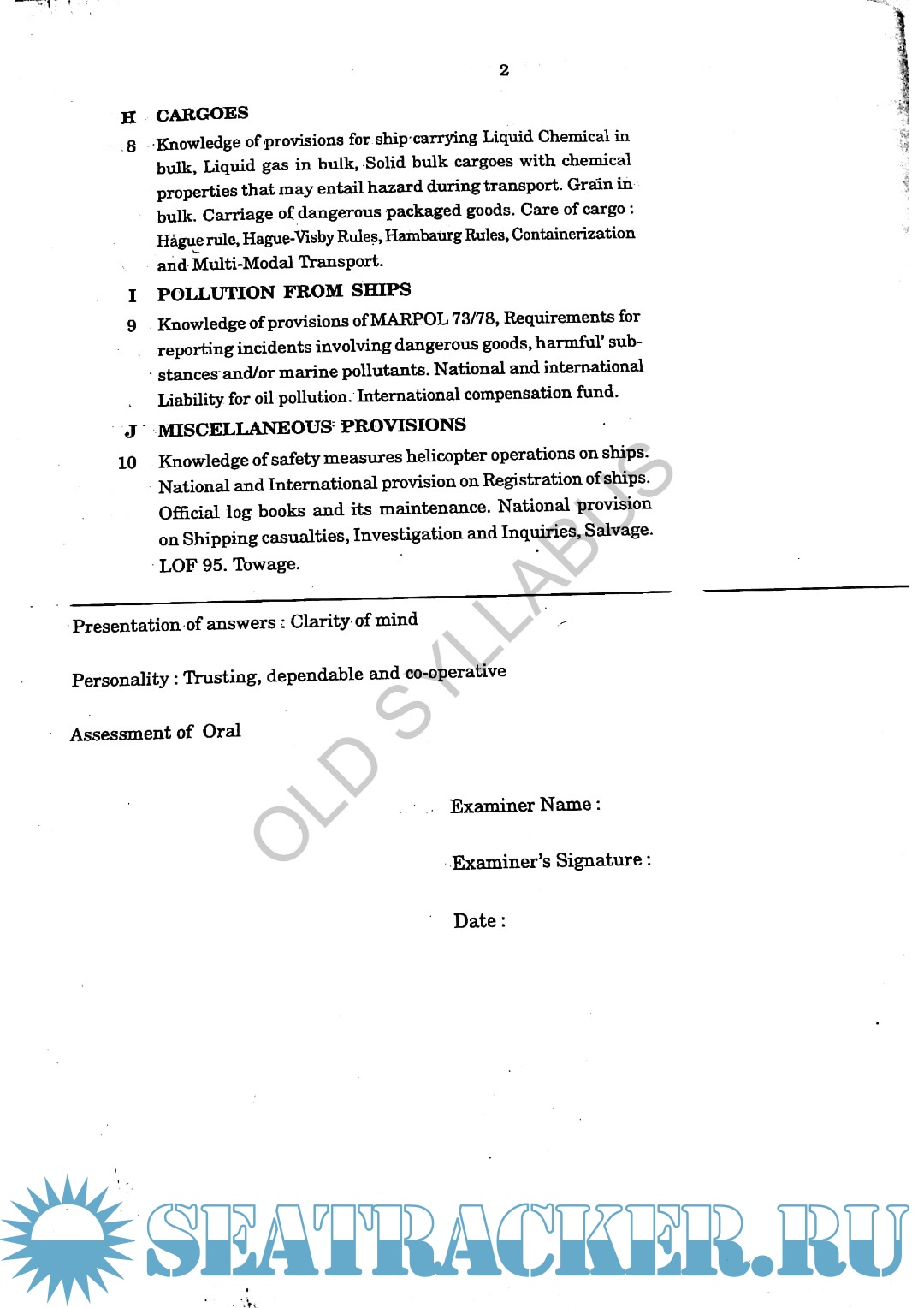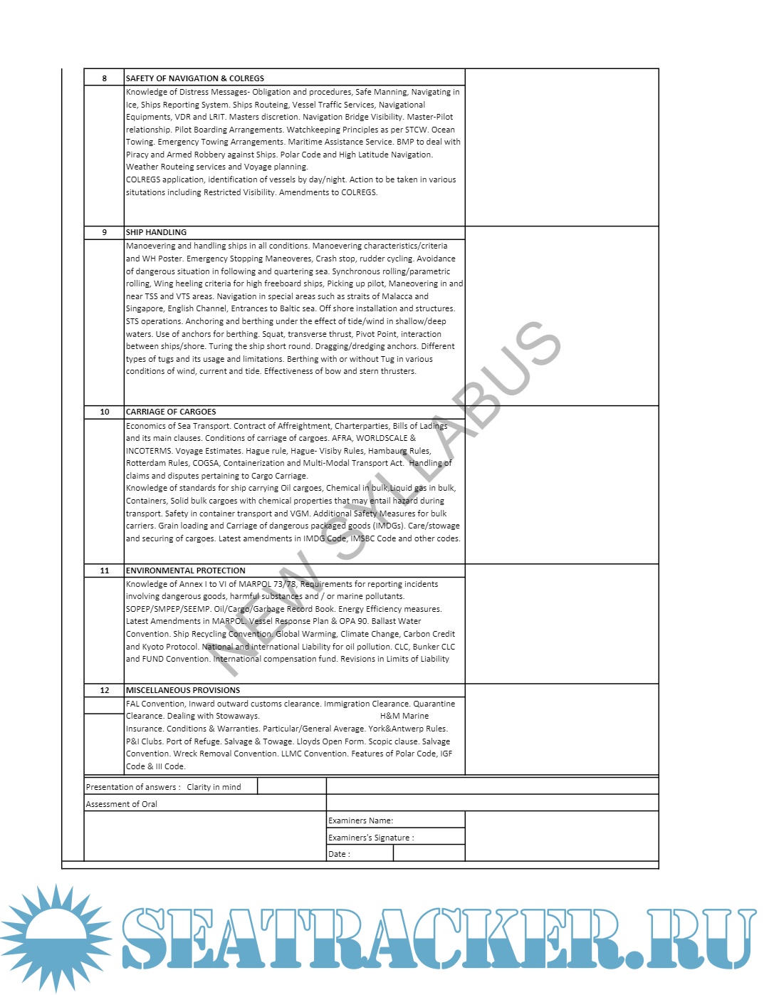 Description: Syllabus for Oral Examination for ASM (Advanced Shipboard Management) / Master's Mercantile Marine Department (MMD), India