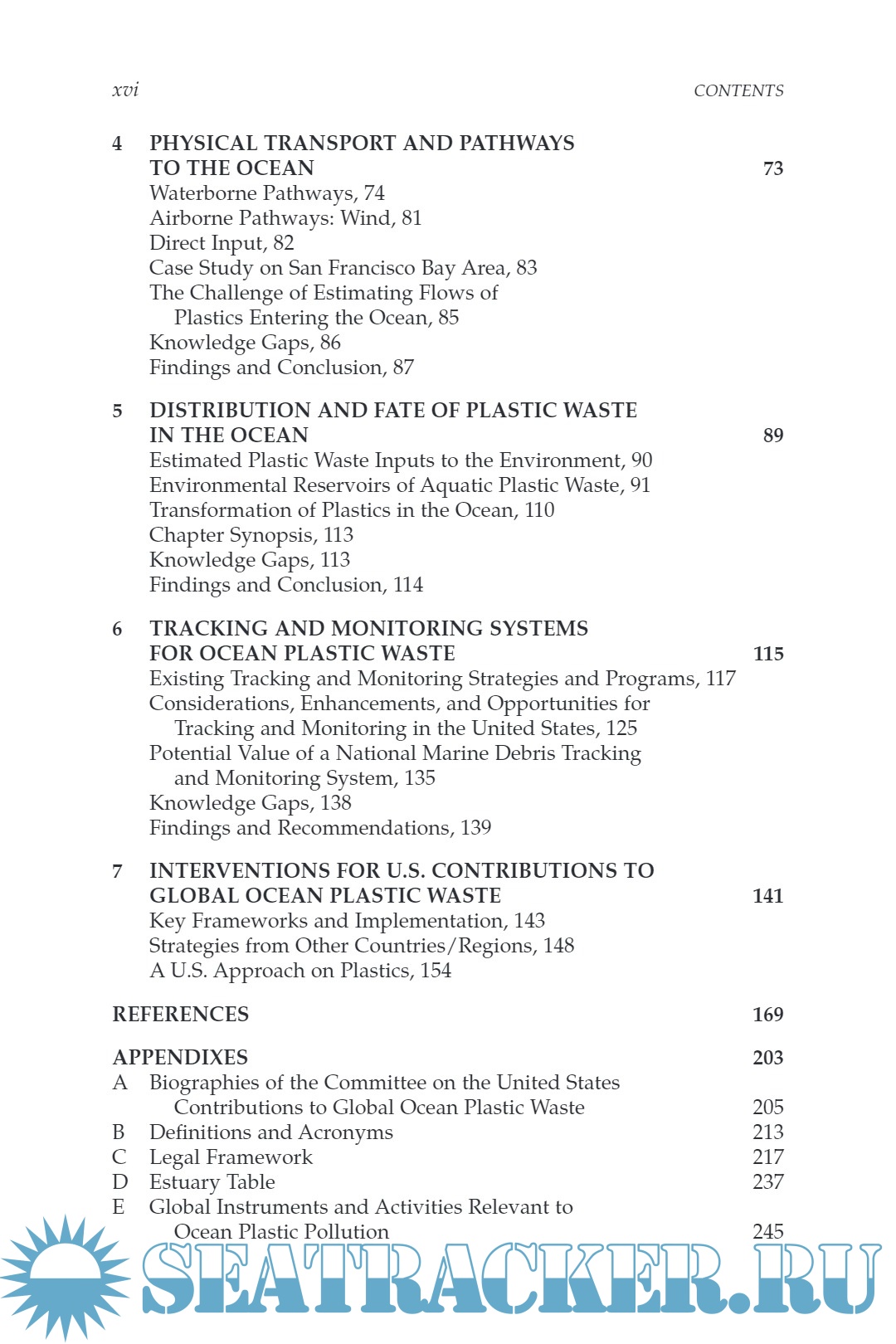 Front Matter Summary 1 Introduction 2 Plastic Production and Global Trade 3 Plastic Waste and Its Management 4 Physical Transport and Pathways to the Ocean 5 Distribution and Fate of Plastic Waste in the Ocean 6 Tracking and Monitoring Systems for Ocean Plastic Waste 7 Interventions for U.S. Contributions to Global Ocean Plastic Waste References Appendixes Appendix A: Biographies of the Committee on the United States Contributions to Global Ocean Plastic Waste Appendix B: Definitions and Acronyms Appendix C: Legal Framework Appendix D: Estuary Table Appendix E: Global Instruments and Activities Relevant to Ocean Plastic Pollution