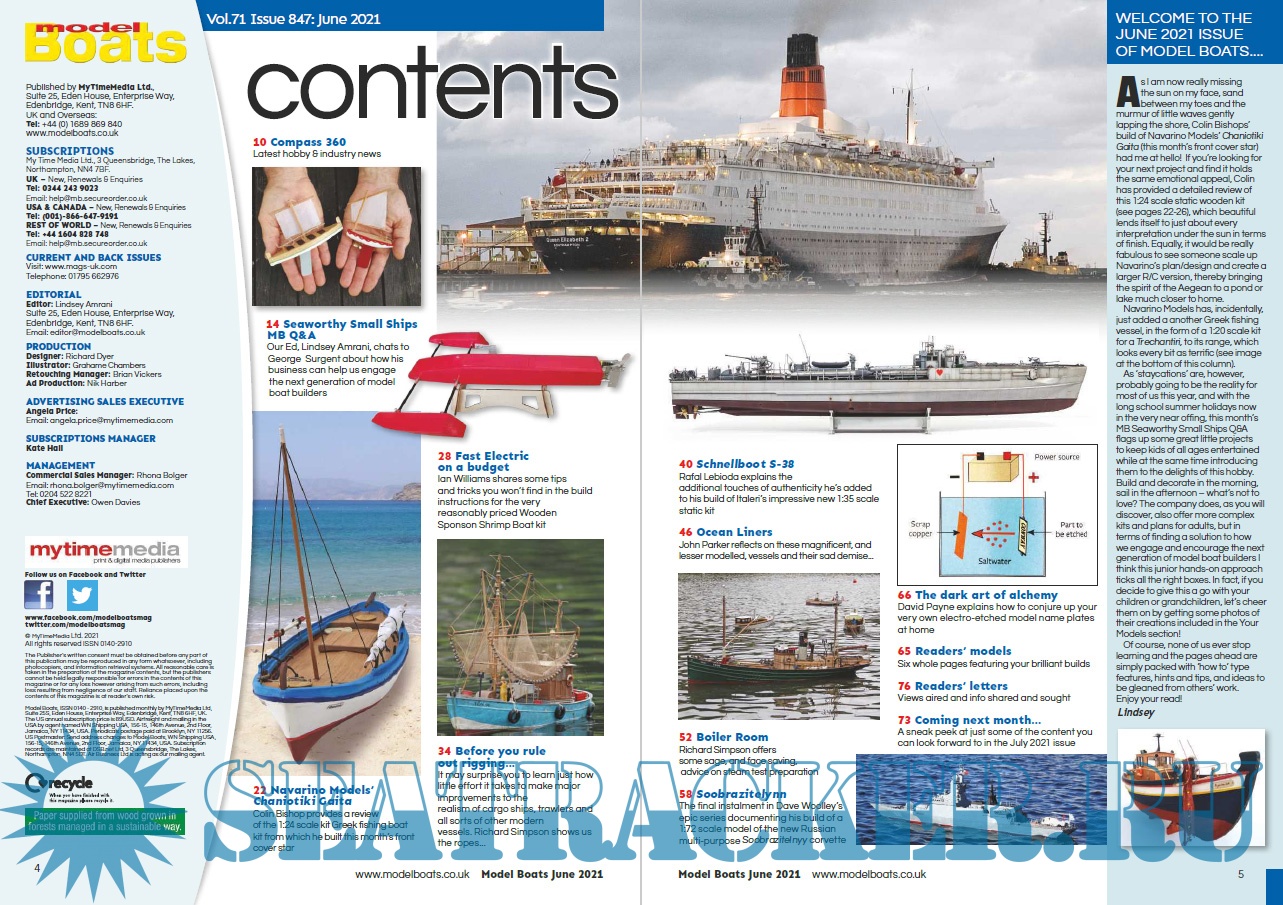 Description: Model Boats magazine is a practical and informative read for those with a love for the hobby. It covers the latest news and views from the various clubs and associations around the country, useful hints, tips and step by step guides for those interested in the art of constructing a model boat as well as tests and recommendations of new boats and tools. Floating along behind these are great special features examining in depth different models from narrowboat to destroyer!