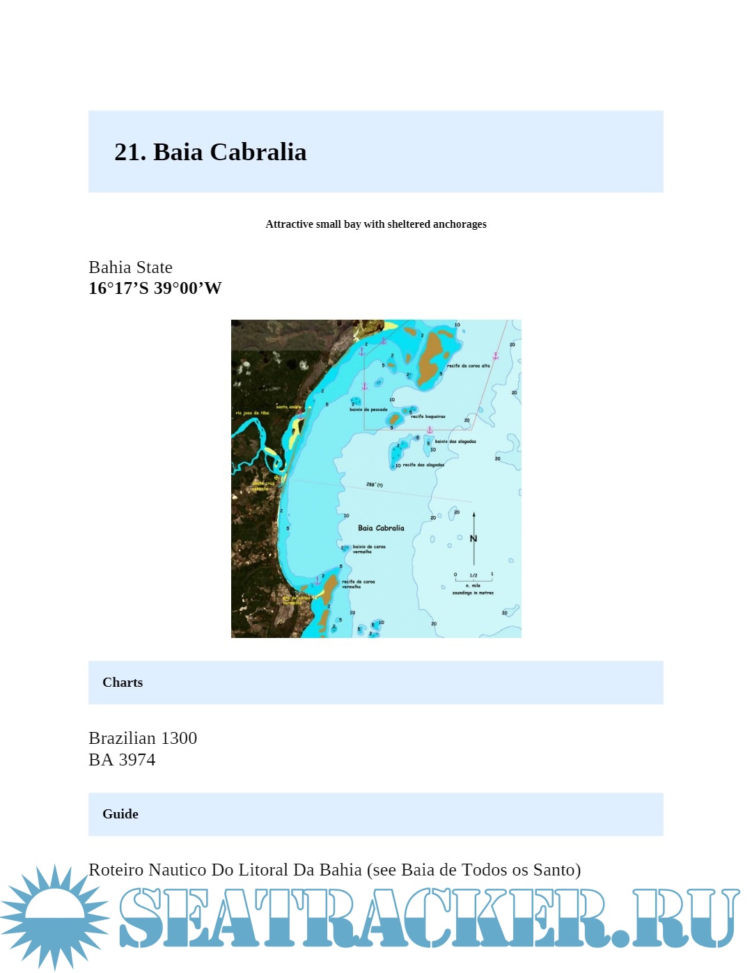 Additional info: Royal Cruising Club Pilotage Foundation Brazil Cruising Guides.