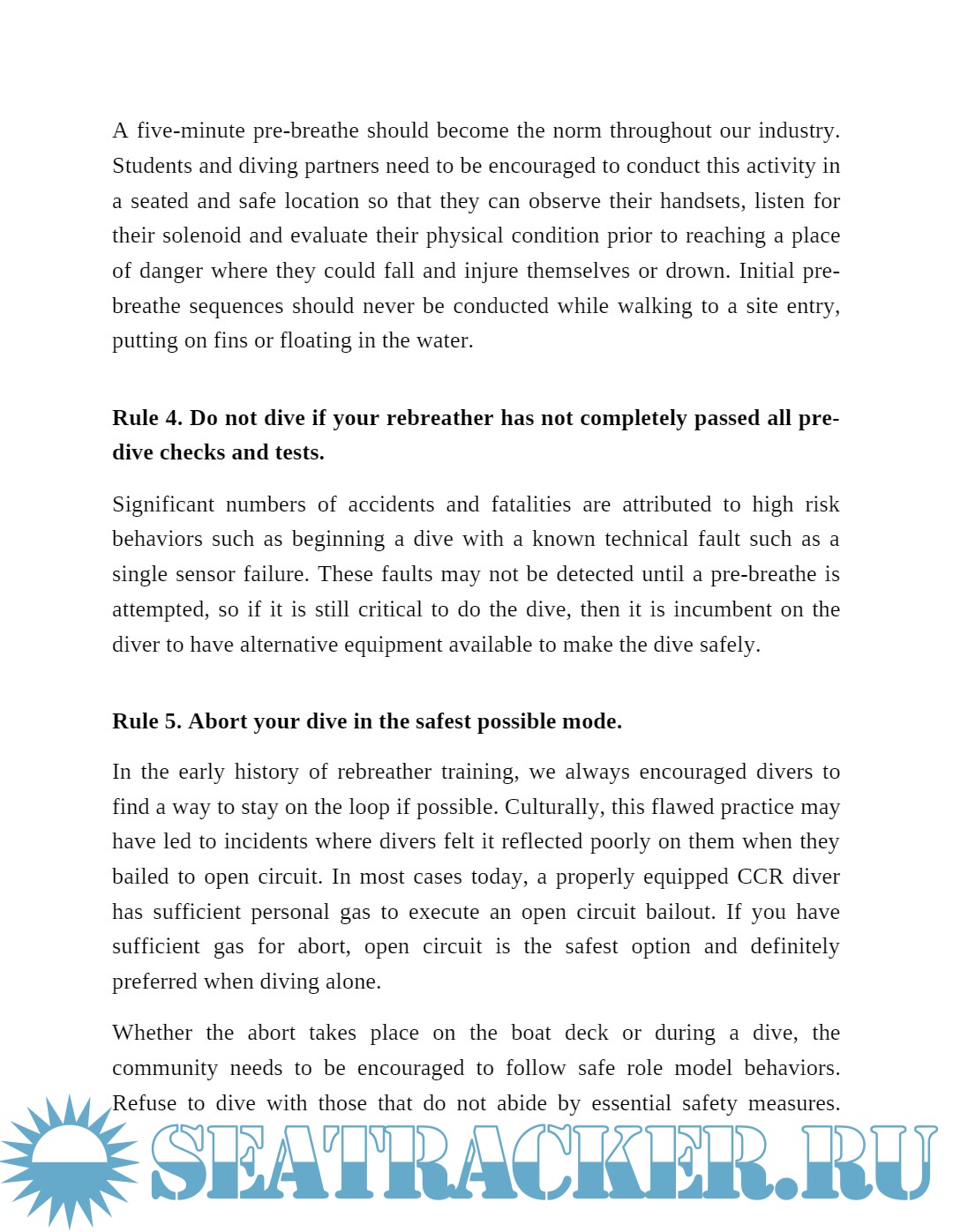 - Jill Heinerth - “5 golden rules of Rebreather Diving”.