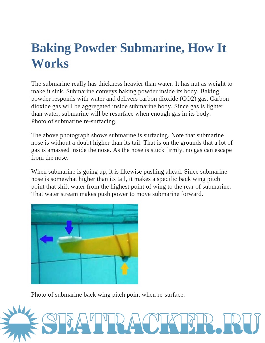 submarine. This submarine not exclusively can jump and surface (vertical movement), yet it likewise can push ahead (level movement). Baking powder