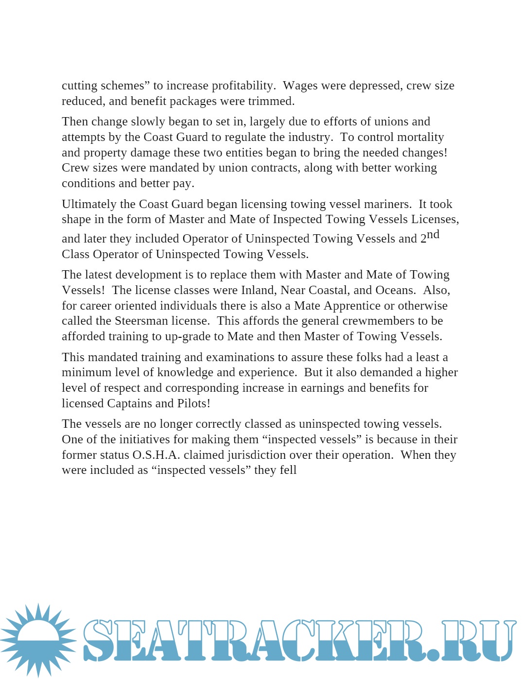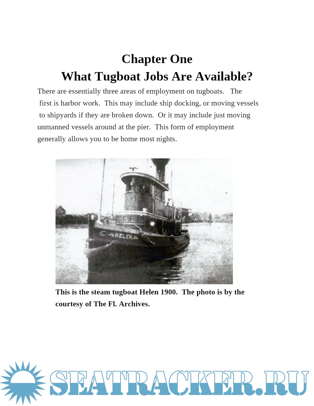 Description: This publication is written for the tugboat buff, and those interested in a career on tugboats. If you like to travel, get paid well for it, and have free meals and lodging away from home this may be the career for you! This career path can lead candidates with and without a college education to prestigious employment that can earn around $140K a year. Positions are available on the rivers and bays, or coastwise and ocean towing. If you are young and in good healtho without any real goals you should check out this career opportunity! The necessary information is all here to get started!
