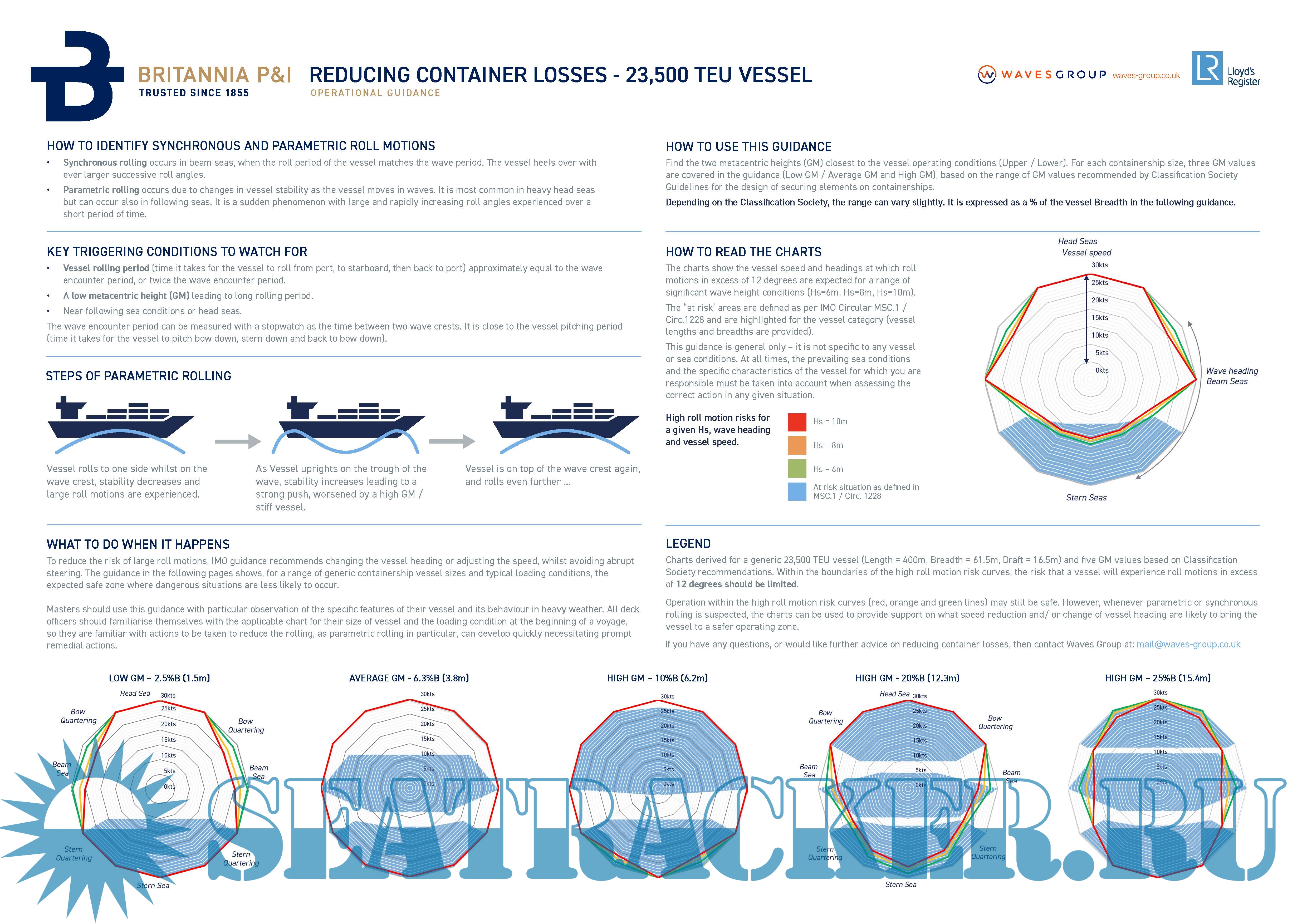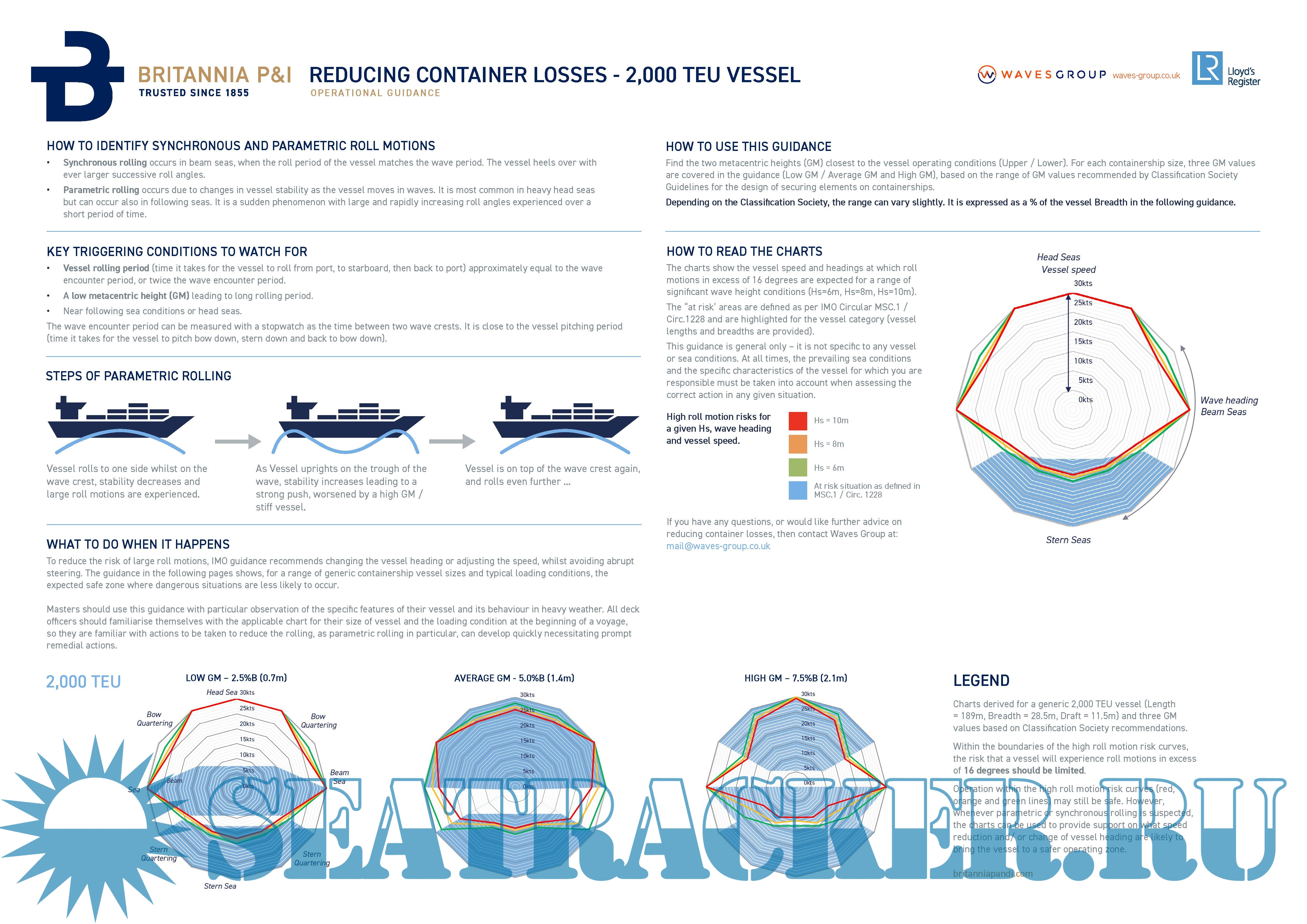 Description: Onboard Safety - Reducing Container Losses posters for vary TEU Vessels published by Britannia P&I Club.