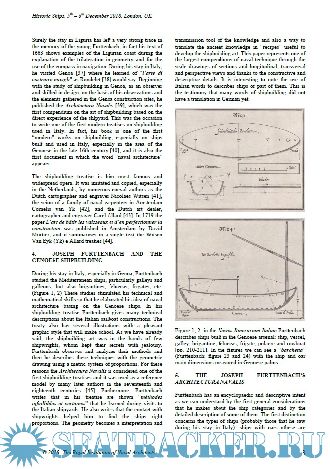 scientific tradition. Precisely is in this context that, in 1626, that Joseph Furttenbach (1591 - 1667) published Architectura Navalis in Ulm. In his treatise he provides a summary of technical descriptions and a detailed account of the construction of sailing boats, according to the Italian way of building, based on direct observation of shipyards.