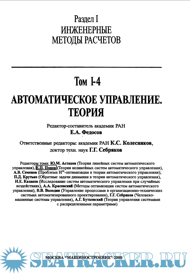 Фролов К.В. - Автоматическое управление. Теория. (МЭ, том I-4) - 2000.djvu