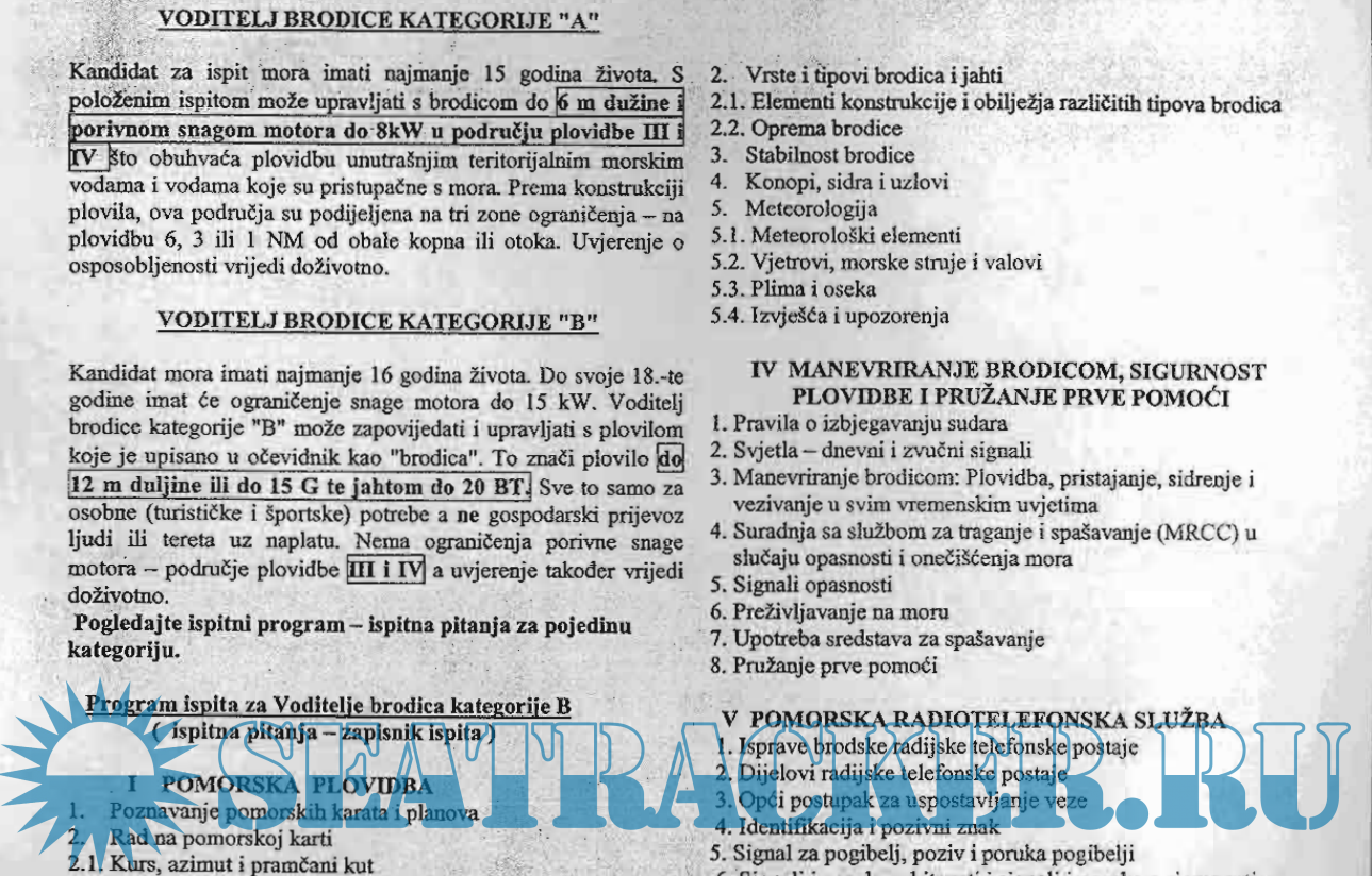 Пособие для подготовки: Хорватский экзамен судоводителя, категории А и В на хорватском языке.
