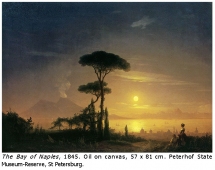 Description: The seascapes of Ivan Aivazovsky (1817-1900) made his name in Russia, his native country where he was a painter of the court of Nicholas I, yet his fame barely extended beyond these borders. Master of the Sublime, he made the ocean the principal subject of his work. Sometimes wild and raging, sometimes calm and peaceful, the life of the ocean is composed of as many allegories as the human condition. Like Turner, whom he knew and whose art he admired, he never painted outside in nature, nor did he make preliminary sketches; hispaintings were the fruit of his exceptional memory. With more than 6,000 canvasses, Aivazovsky was one of the most prolific painters of his time.