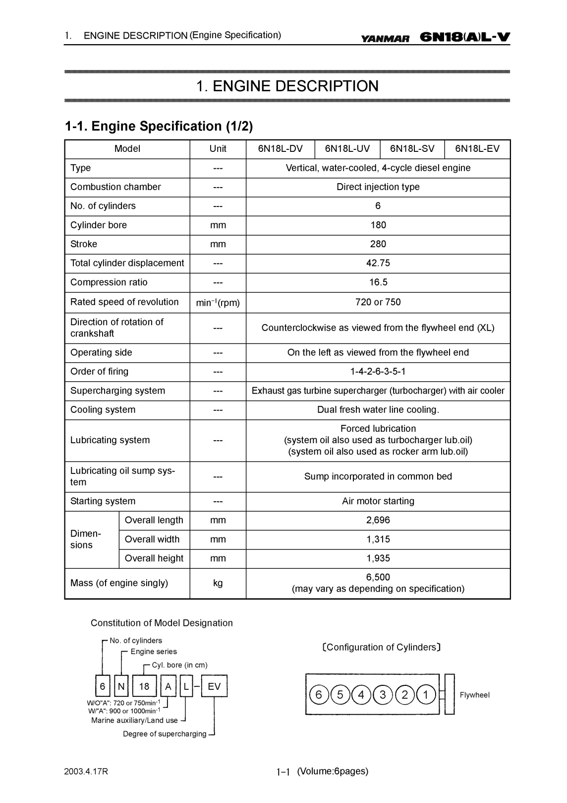 Description: YANMAR 6N18(A)L-V Operation Manual