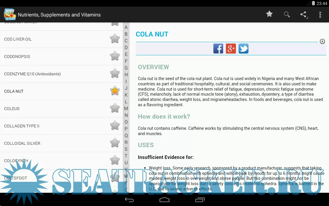 Year: 2023 Version: 4.8.1 Developer: Medical Group Soft Platform: Android 64-bit OS compatibility: yes System Requirements: Android 5.0+ Localization: english Crack: Included Description: Nutrients, Supplements & Vitamins are essential nutrients because they perform hundreds of roles in the body. This is dictionary contain advice and information on vitamins, minerals and trace elements essential for health, including: - what they do; - how much you need; - what happens if you have too much; - safety advice about supplements. Main Features: - Offline – It wok offline, no active internet connection is required; - Detailed description of all major Vitamins and minerals; - Equipped with quick dynamic search function – The dictionary will start searching for the words while you type; - Voice search; - Easy way to share with your friends; - Bookmark – you are able to bookmark the Disease Terms to your favorites list by clicking on the “star” icon; - Managing Bookmark Lists – you are able edit your bookmark lists or clear them. Additional info: Mod by Tryroom