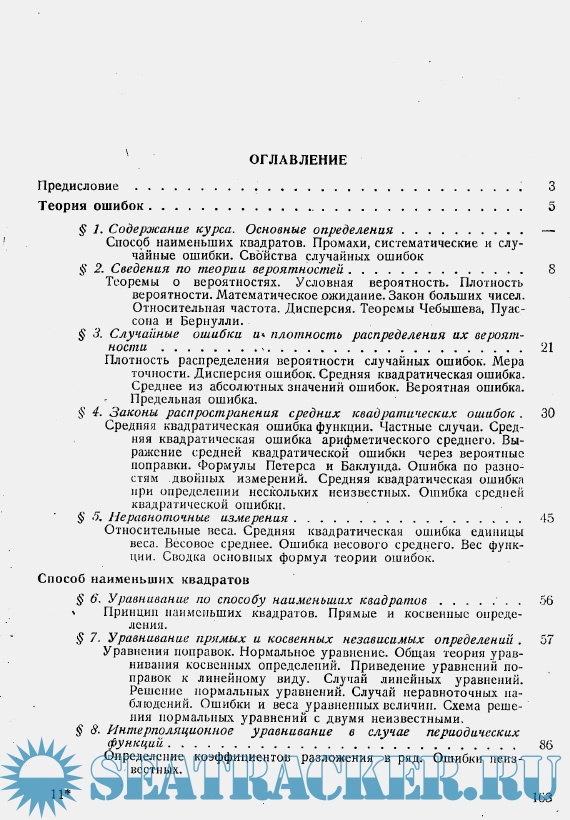 Настоящий курс, написанный в связи с введением в учебный план судоводительских факультетов высших мореходных училищ специального раздела курса высшей математики - теории ошибок и способа наименьших квадратов, - предназначен, в первую очередь, для преподавателей, ведущих этот курс, и для аспирантов кафедр судовождения.