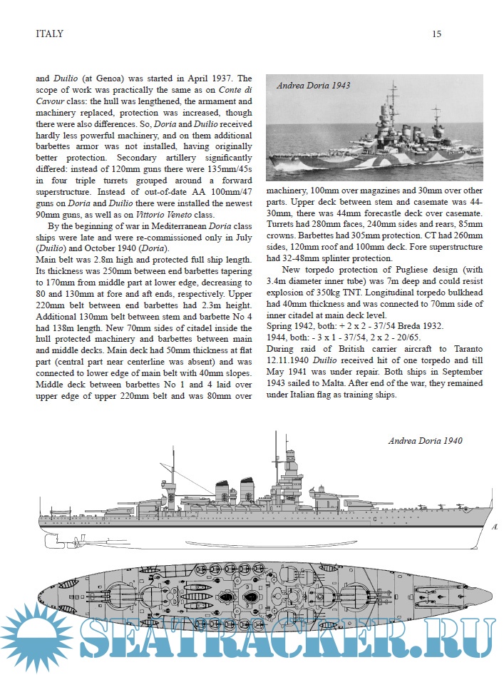 Description: This book, the sixth in the "Fighting ships of World War Two" series, contains reference information about all fighting ships and boats of the Royal Italian Navy, served, built or ordered in days of the Second World War. Articles contain information about designing, building and service of all ships and their technical data and modernization. Texts are accompanied by many photos and side view drawings. The book also contains information about organization of the Italian Navy, Italian ship-based airplanes and naval weapons.