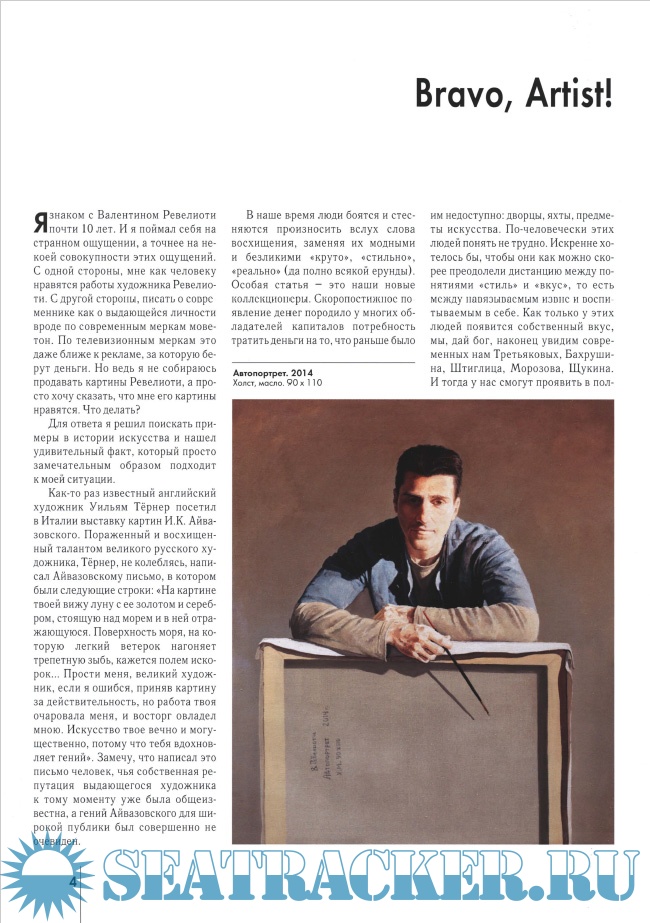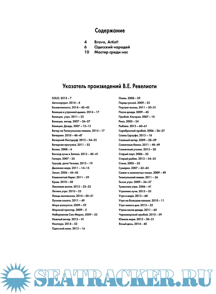 Описание: Альбом знакомит с творчеством молодого художника-мариниста Валентина Ревелиоти. Подобно великому Айвазовскому, он стремится к созданию грандиозных красочных полотен, могущих прославить русское искусство. Несмотря на то, что Ревелиоти молод, он сумел воплотить в маринистической живописи свои чувства и мысли и придать глубокий смысл и значимость своему искусству.