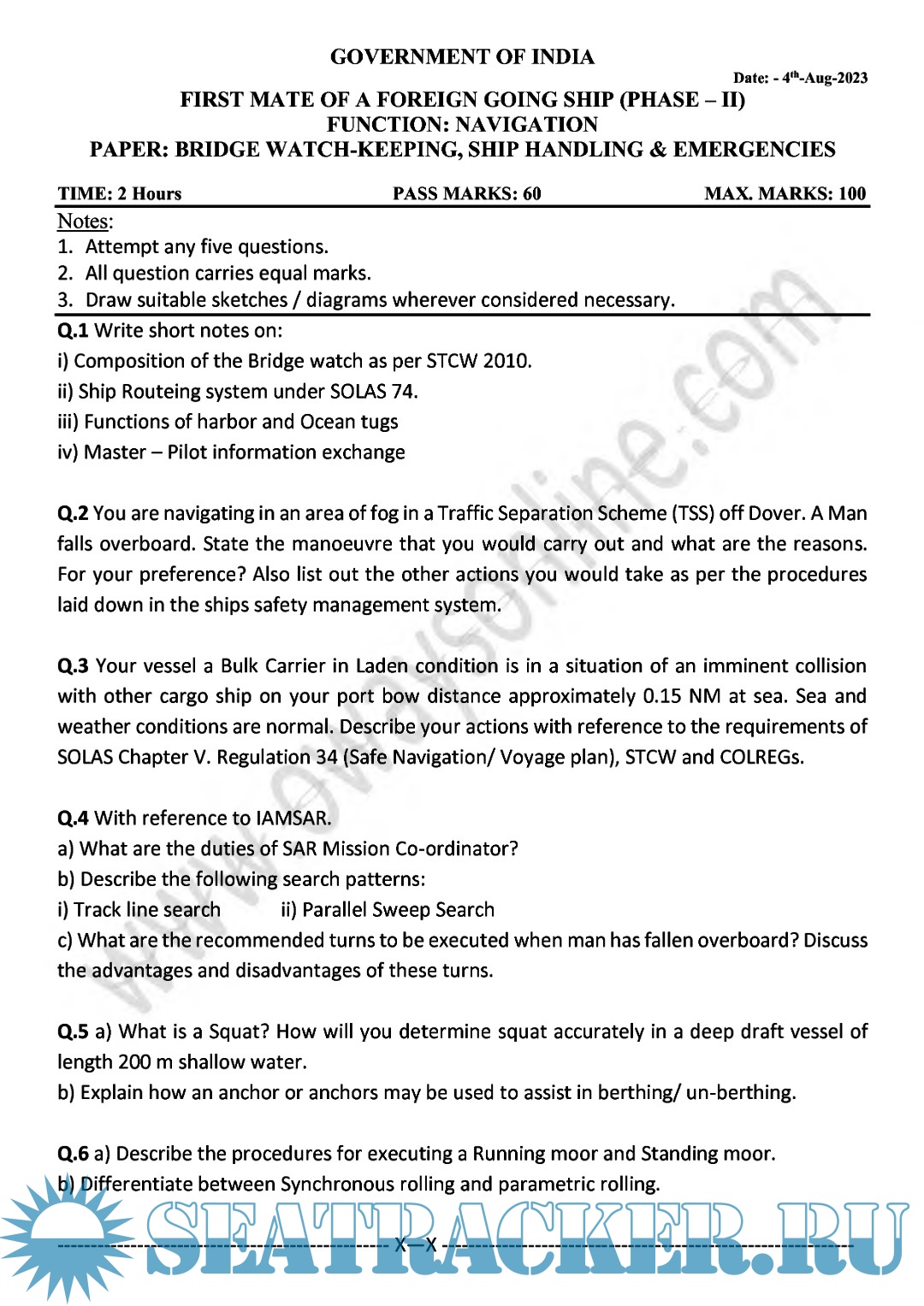 Question Paper Set (May 2023) Phase II (Chief Mate F.G.) Mercantile Marine Department (MMD), India…