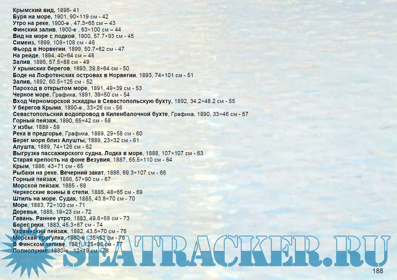 Год выпуска: 2023 Язык: русский Автор: 5sb1 Жанр: Другое Издание: Художники-маринисты выпуск 1 Формат: PDF Качество: Изначально компьютерное (eBook) Количество страниц: 191 Описание: 180 живописных и графических работ Льва Феликсовича Лагорио Доп. информация: Цель выпусков «Художники-маринисты» познакомить с работами незаслуженно забытых и мало известных мастеров изображения морской стихии – как старых живописцев, так и наших современников, не только из России, но и из других стран.