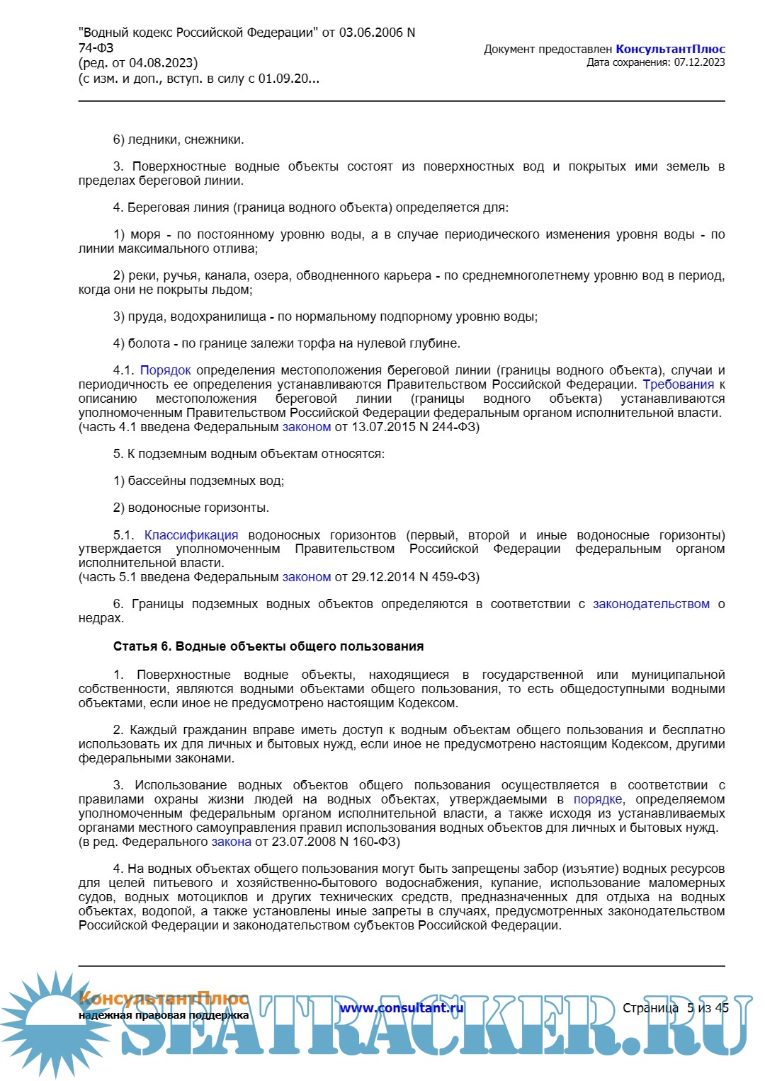 Описание: "Водный кодекс Российской Федерации" от 03.06.2006 N 74-ФЗ (ред. от 04.08.2023) (с изм. и доп., вступ. в силу с 01.09.2023).
