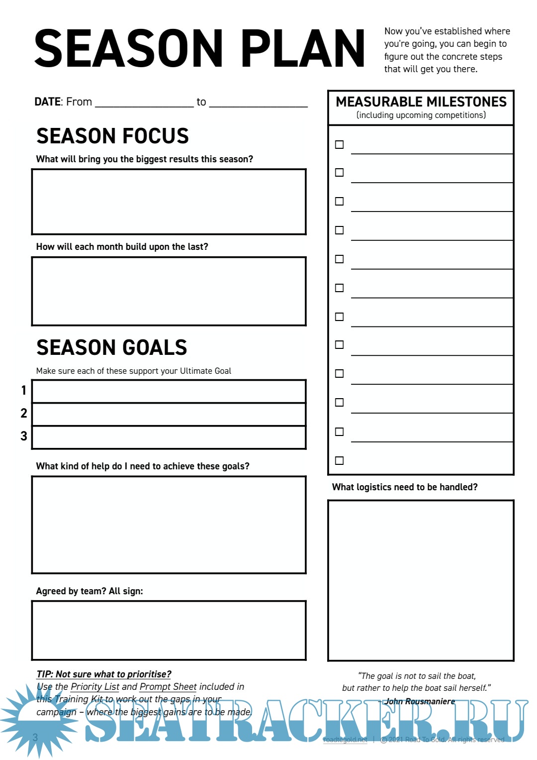 1. Priority Checklist – determine the areas that will get you the results you want on the race course.2. Process Prompt Sheet – 60 training ideas to make sure you're not missing any piece of the puzzle.