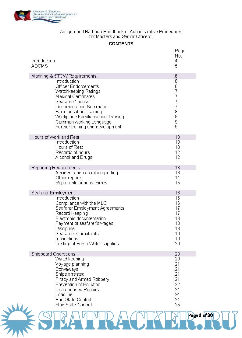 Handbook of Administrative Procedures for Masters and Senior Officers (Antigua & Barbuda Department…