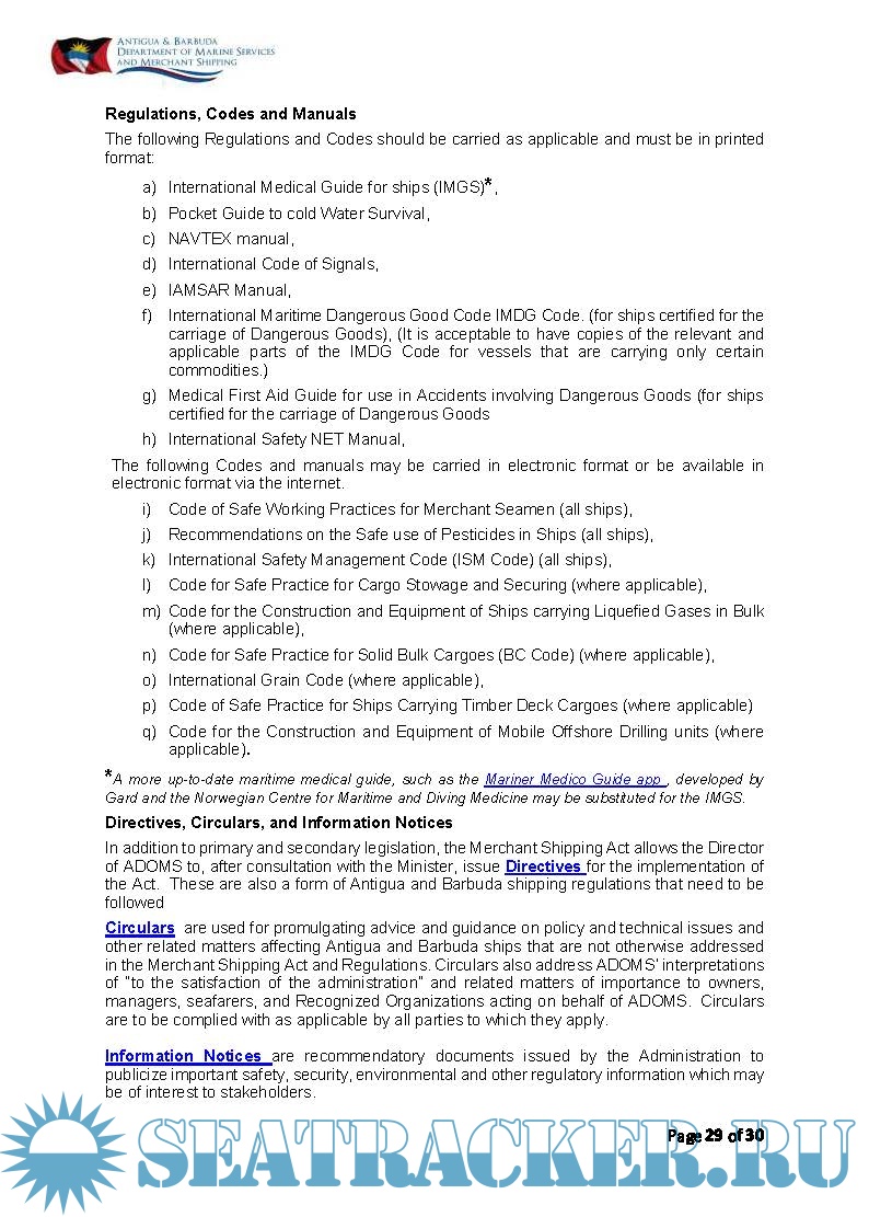 Description: This handbook is designed for all Masters and senior officers of Antigua and Barbuda registered vessels.